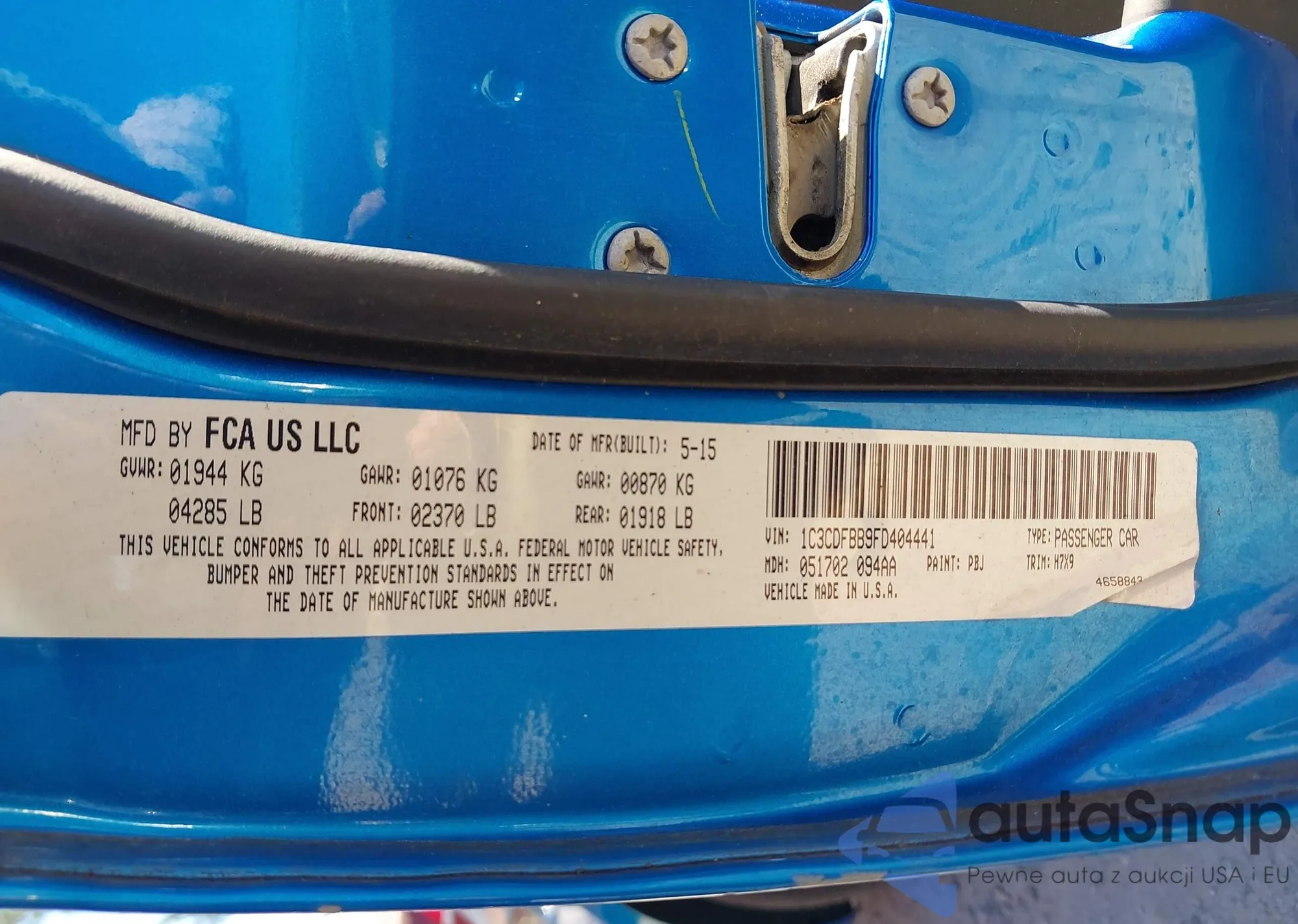 Автомобиль Dodge Dart 2015 (VIN 1C3CDFBB9FD404441) ранее не участвовал в торгах. Документы чистые, пробег соответствует или ниже среднего по рынку. Продаётся страховой компанией — рекомендуем покупку. Доставка в порт займет около 6–8 недель.