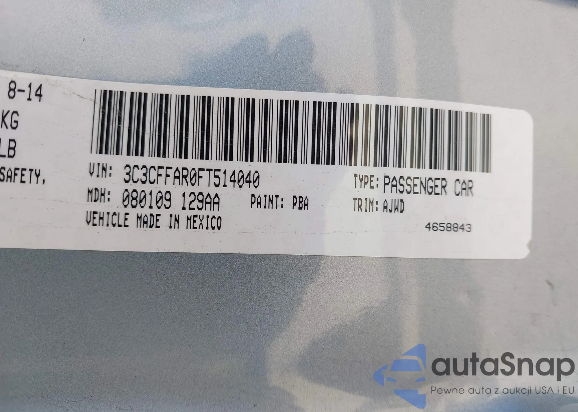 Автомобиль Fiat 500 2015 (VIN 3C3CFFAR0FT514040) ранее не участвовал в торгах. Документы чистые, пробег соответствует или ниже среднего по рынку. Продаётся страховой компанией — рекомендуем покупку. Доставка в порт займет около 6–8 недель.