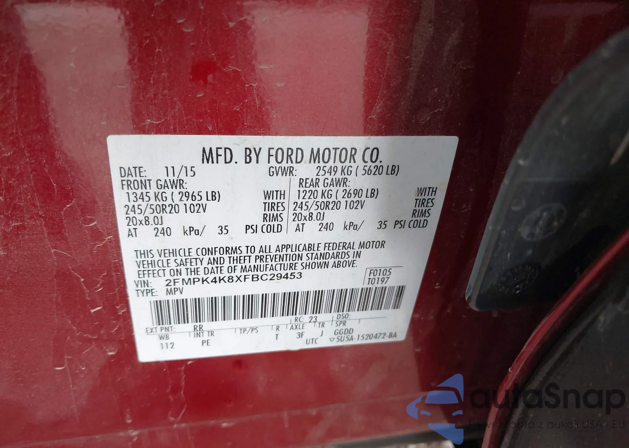 VIN: 2FMPK4K8XFBC29453