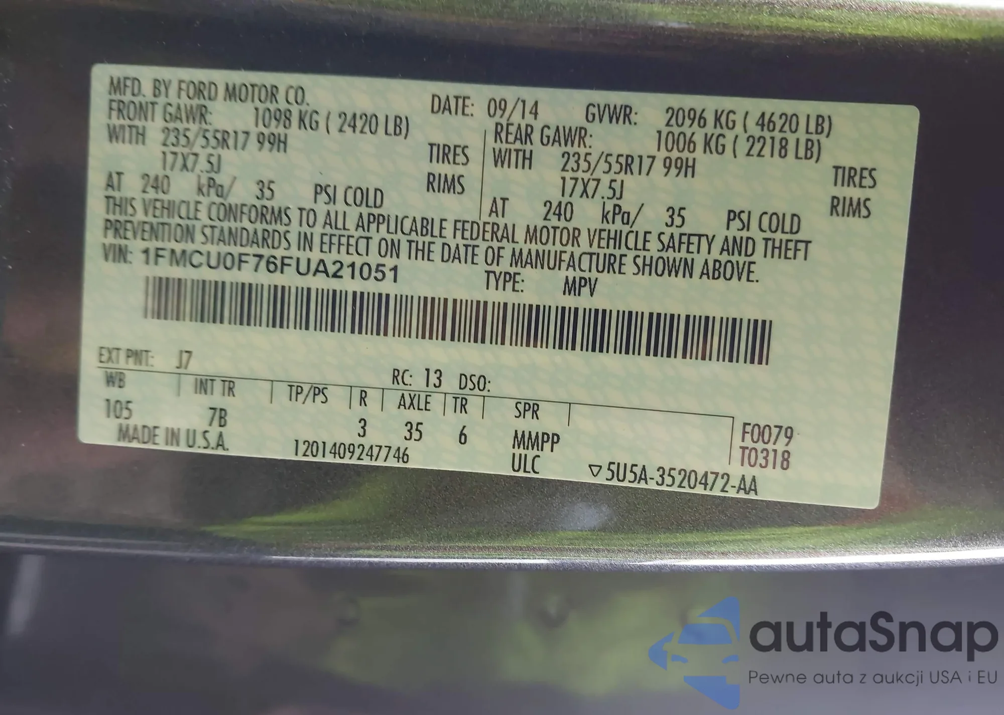 VIN: 1FMCU0F76FUA21051