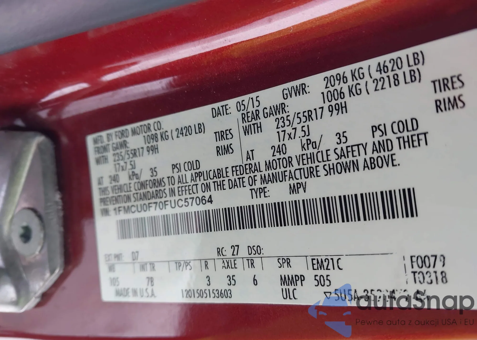 VIN: 1FMCU0F70FUC57064