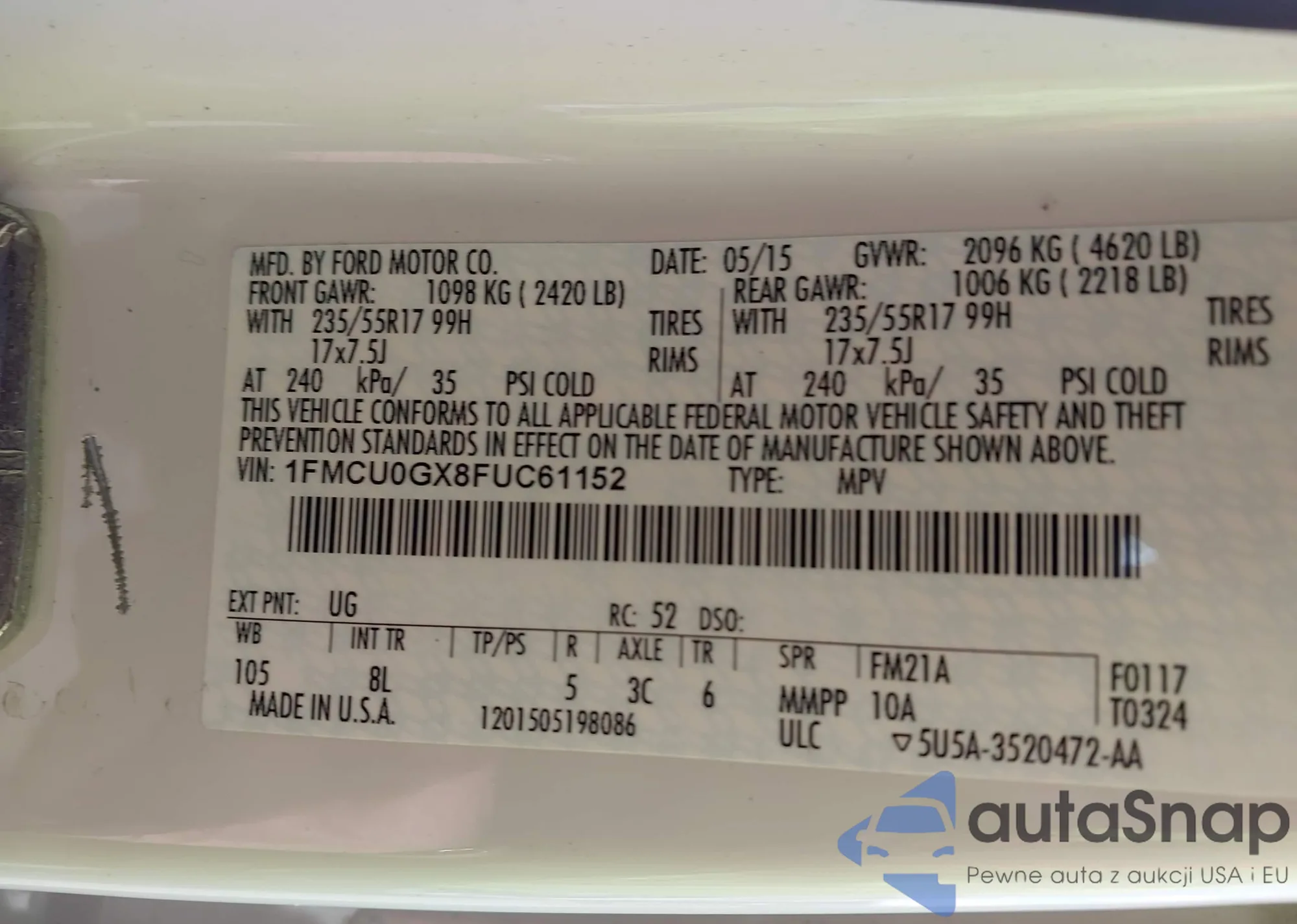 VIN: 1FMCU0GX8FUC61152