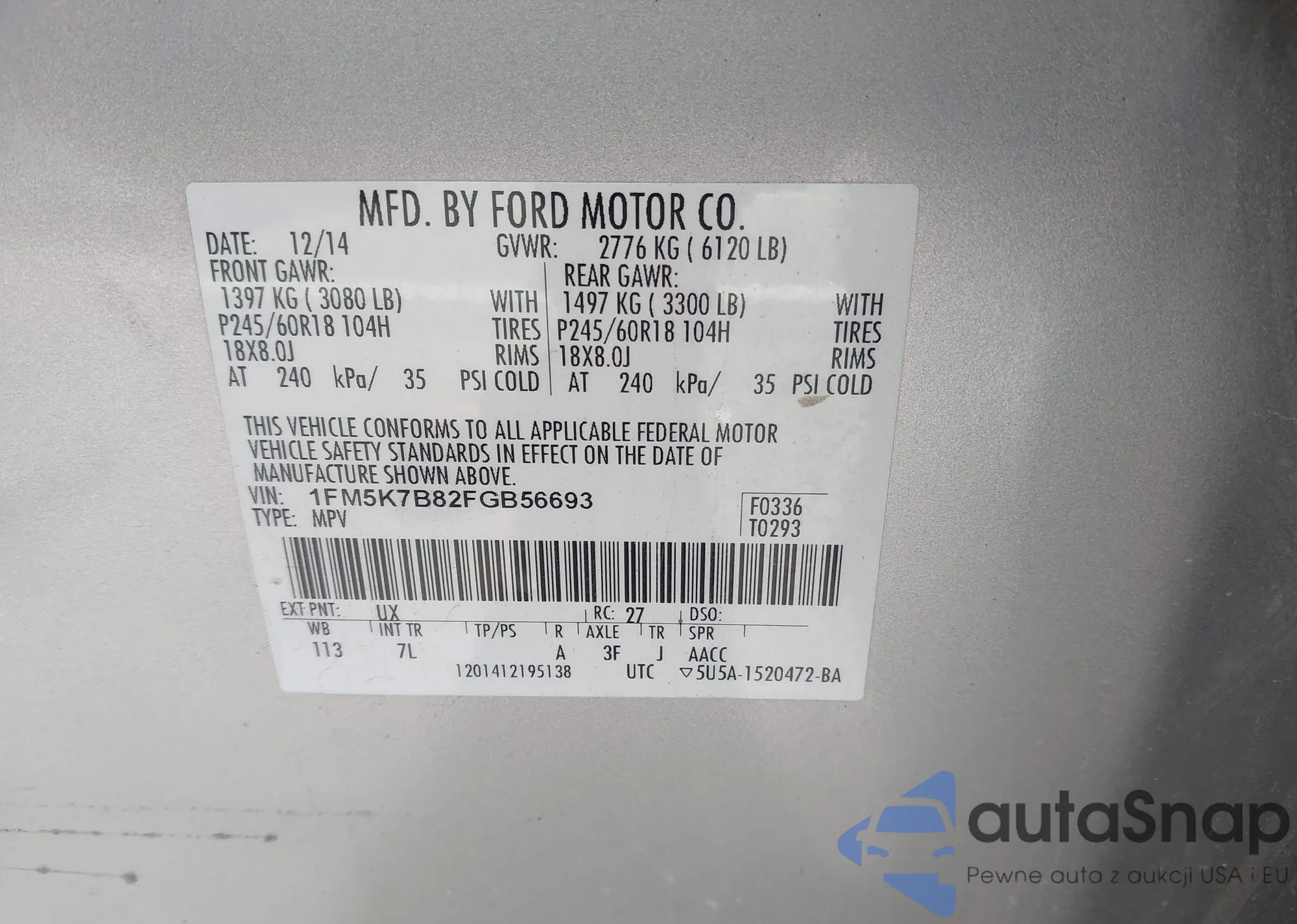 VIN: 1FM5K7B82FGB56693