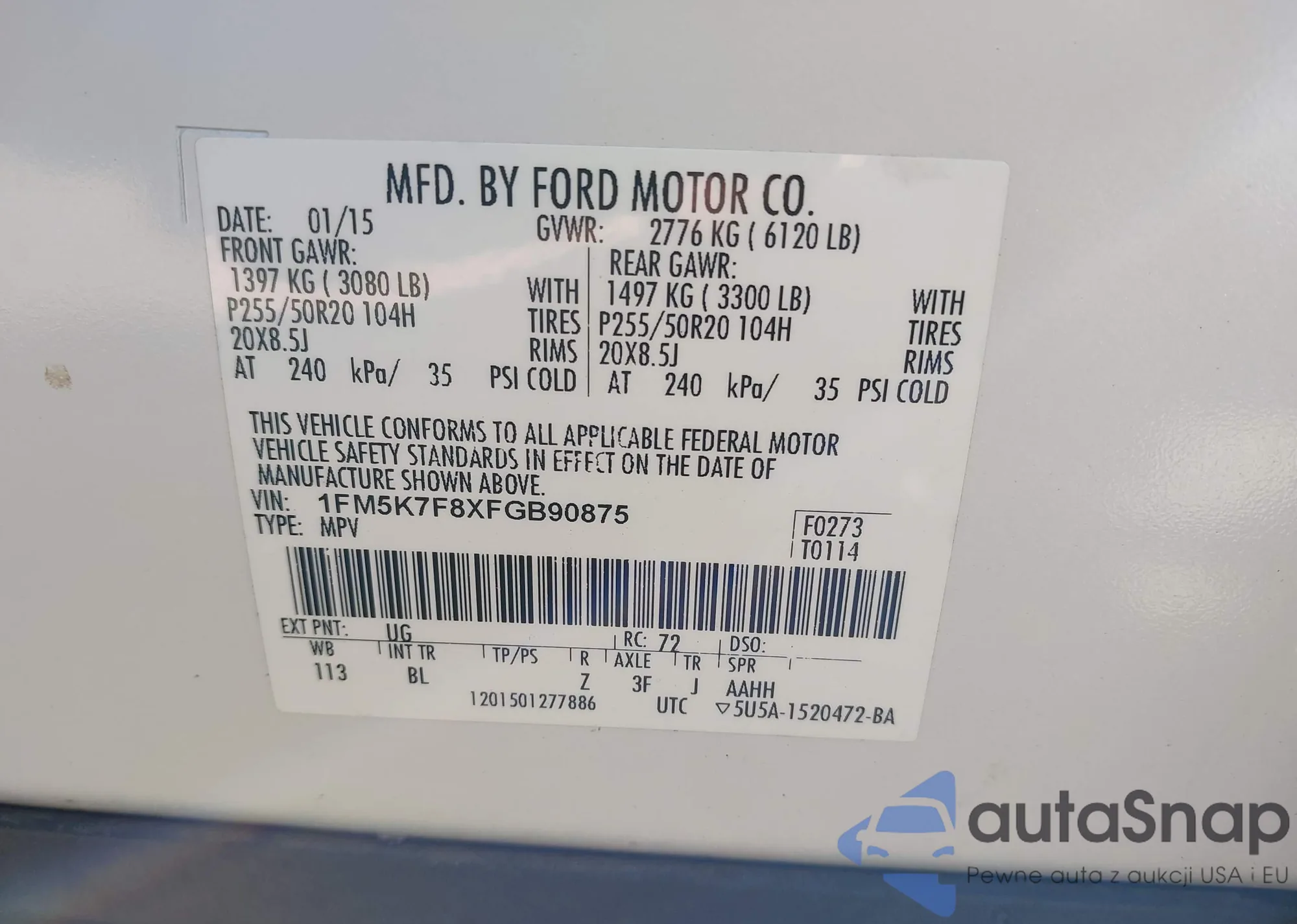 VIN: 1FM5K7F8XFGB90875