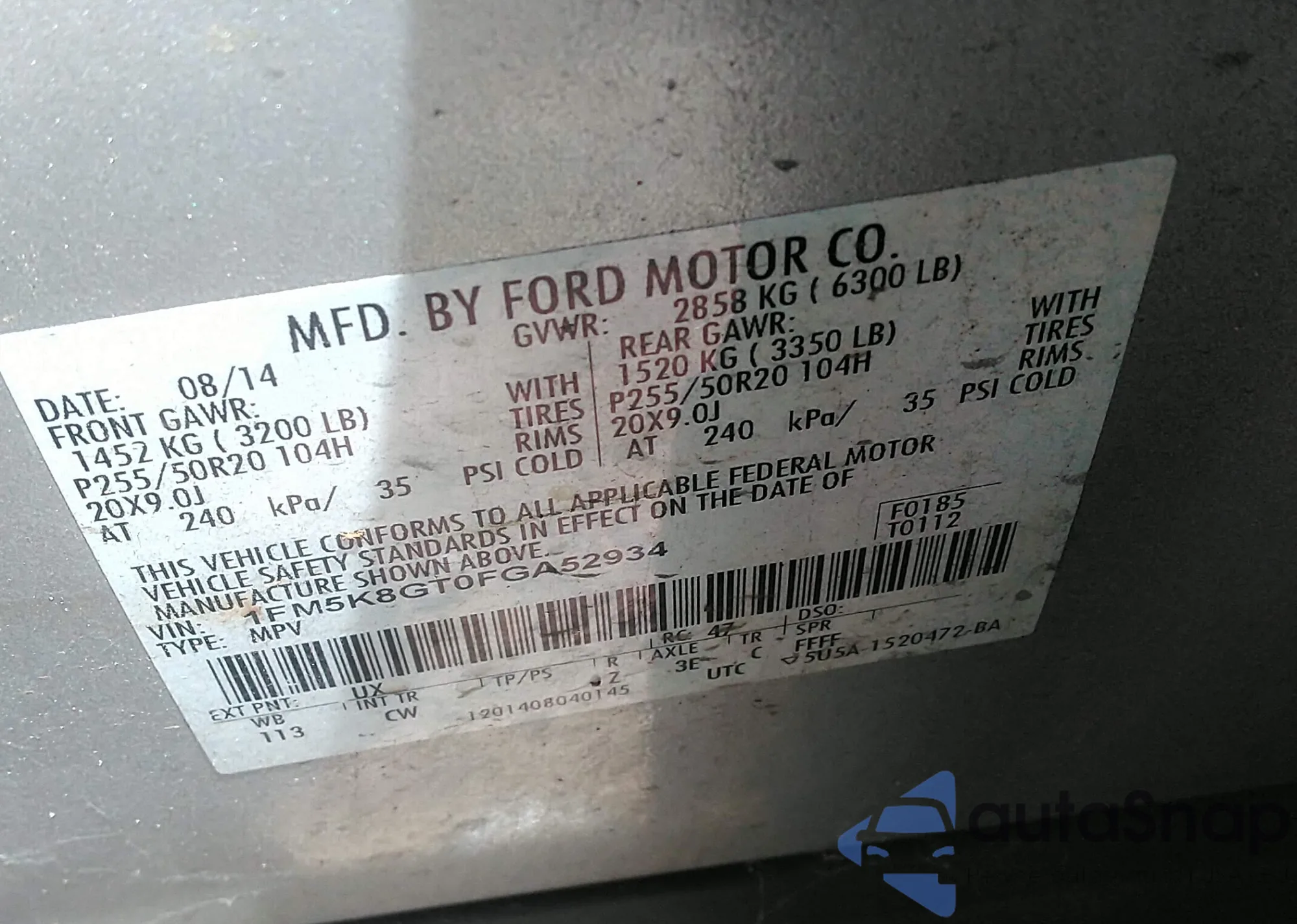 VIN: 1FM5K8GT0FGA52934