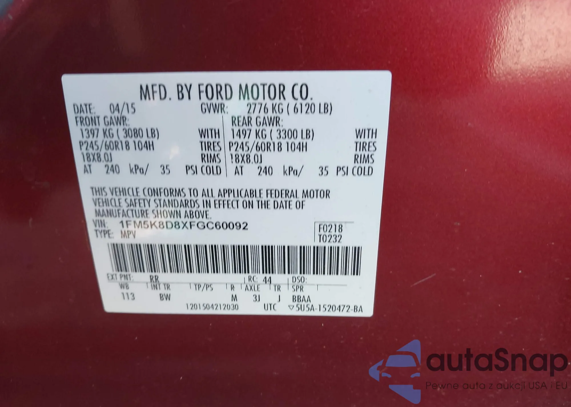 VIN: 1FM5K8D8XFGC60092
