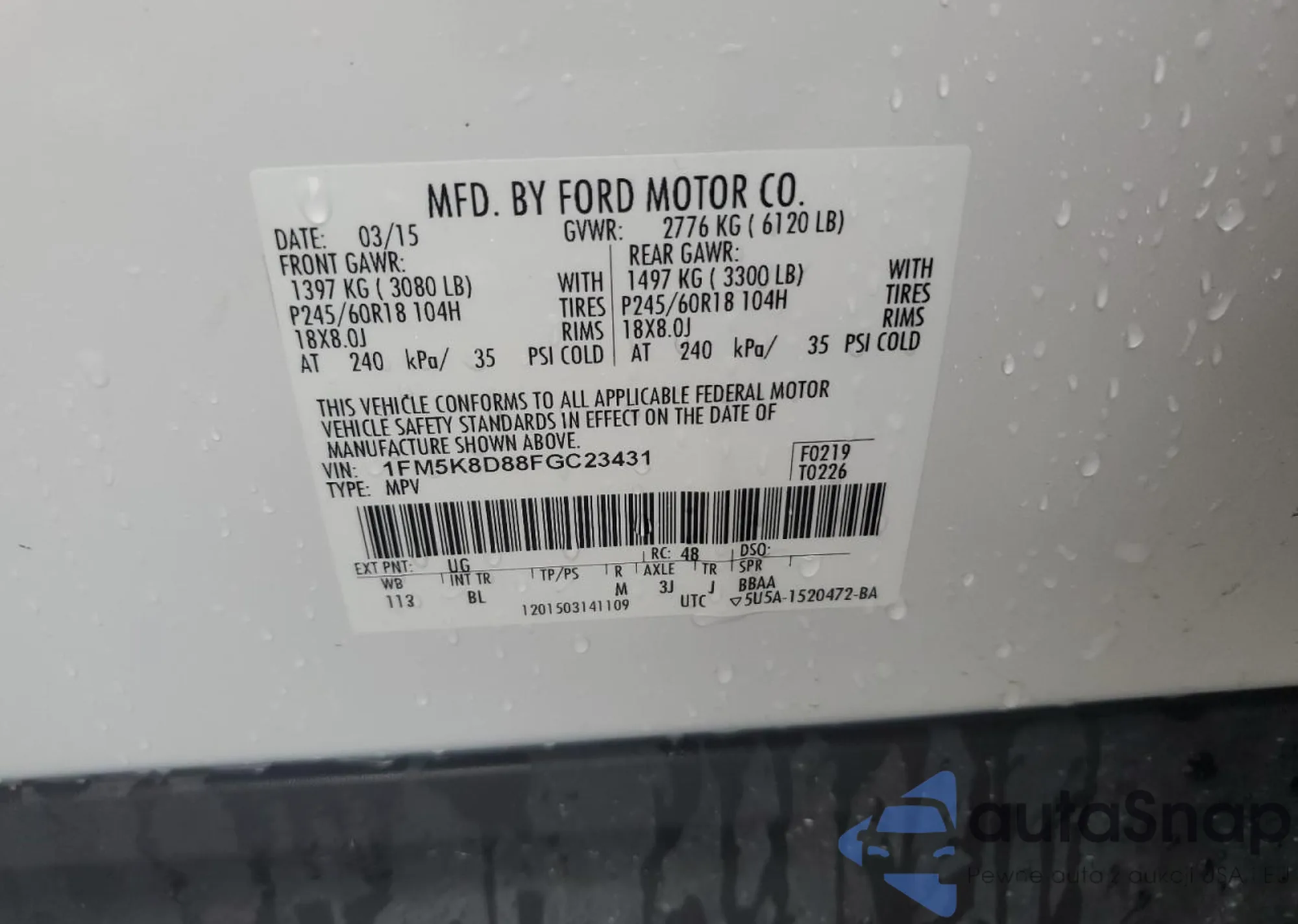 VIN: 1FM5K8D88FGC23431