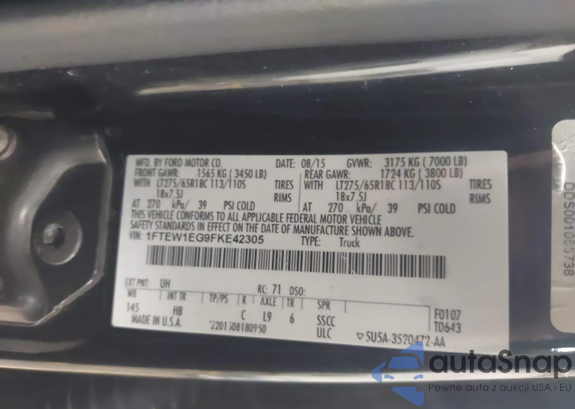 Автомобиль Ford F-150 2015 (VIN 1FTEW1EG9FKE42305) ранее не участвовал в торгах. Документы чистые, пробег соответствует или ниже среднего по рынку. Продаётся страховой компанией — рекомендуем покупку. Доставка в порт займет около 6–8 недель.
