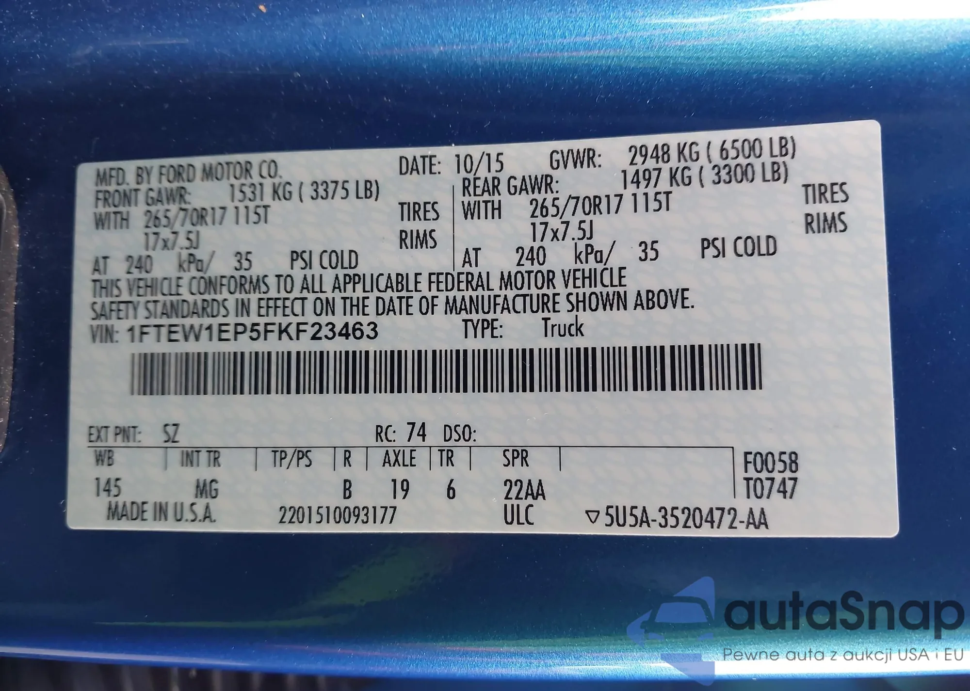 • VIN: 1FTEW1EP5FKF23463