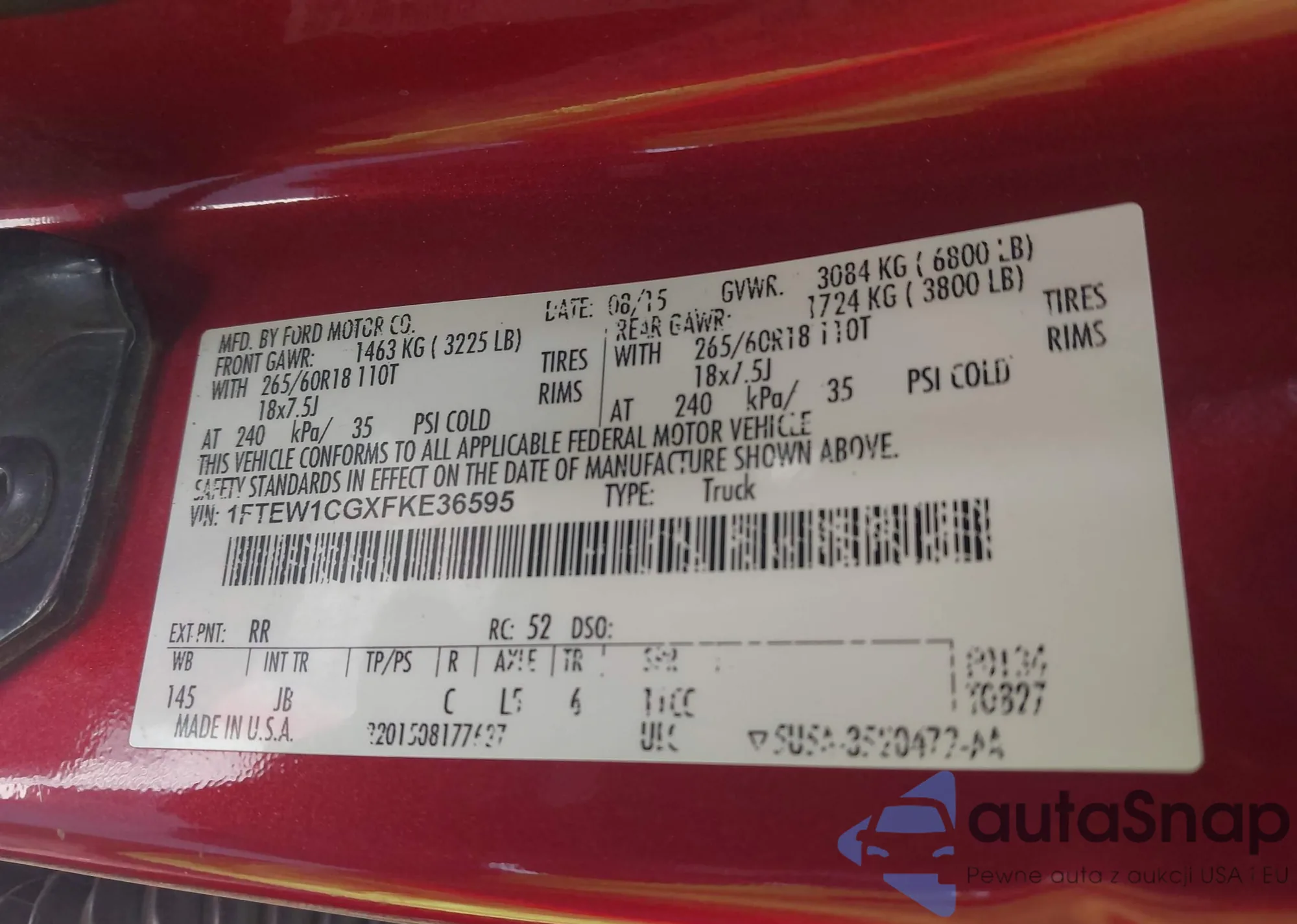 VIN: 1FTEW1CGXFKE36595