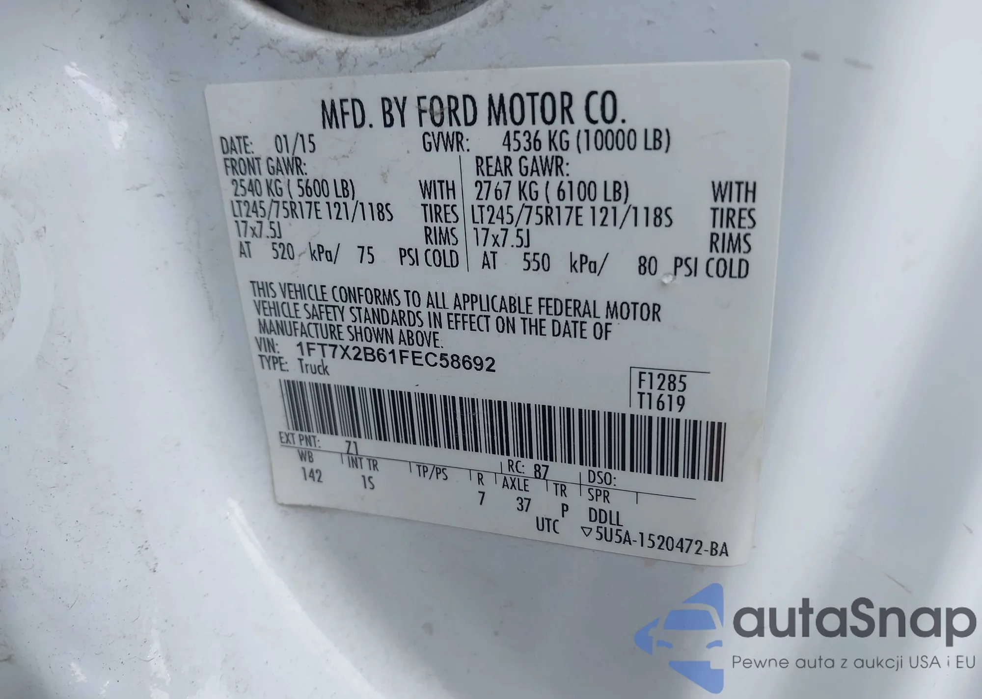 VIN: 1FT7X2B61FEC58692