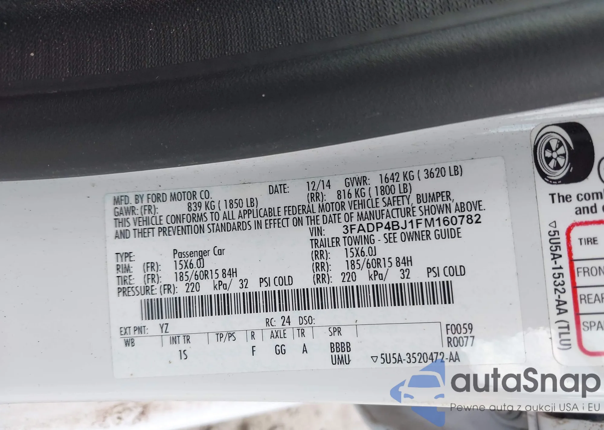VIN: 3FADP4BJ1FM160782
