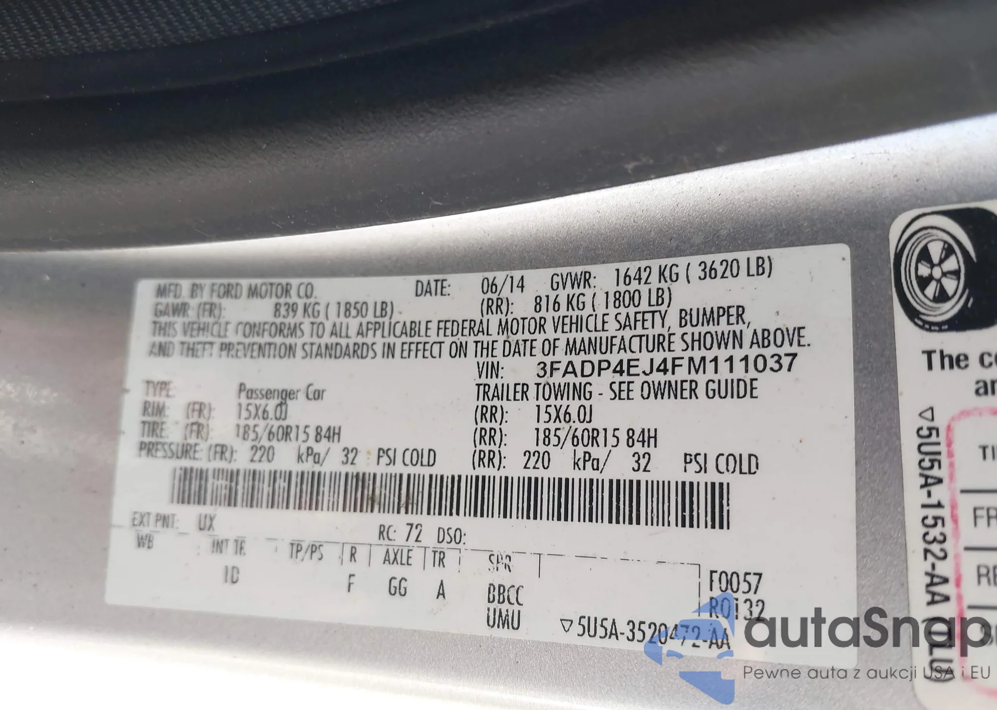 VIN: 3FADP4EJ4FM111037