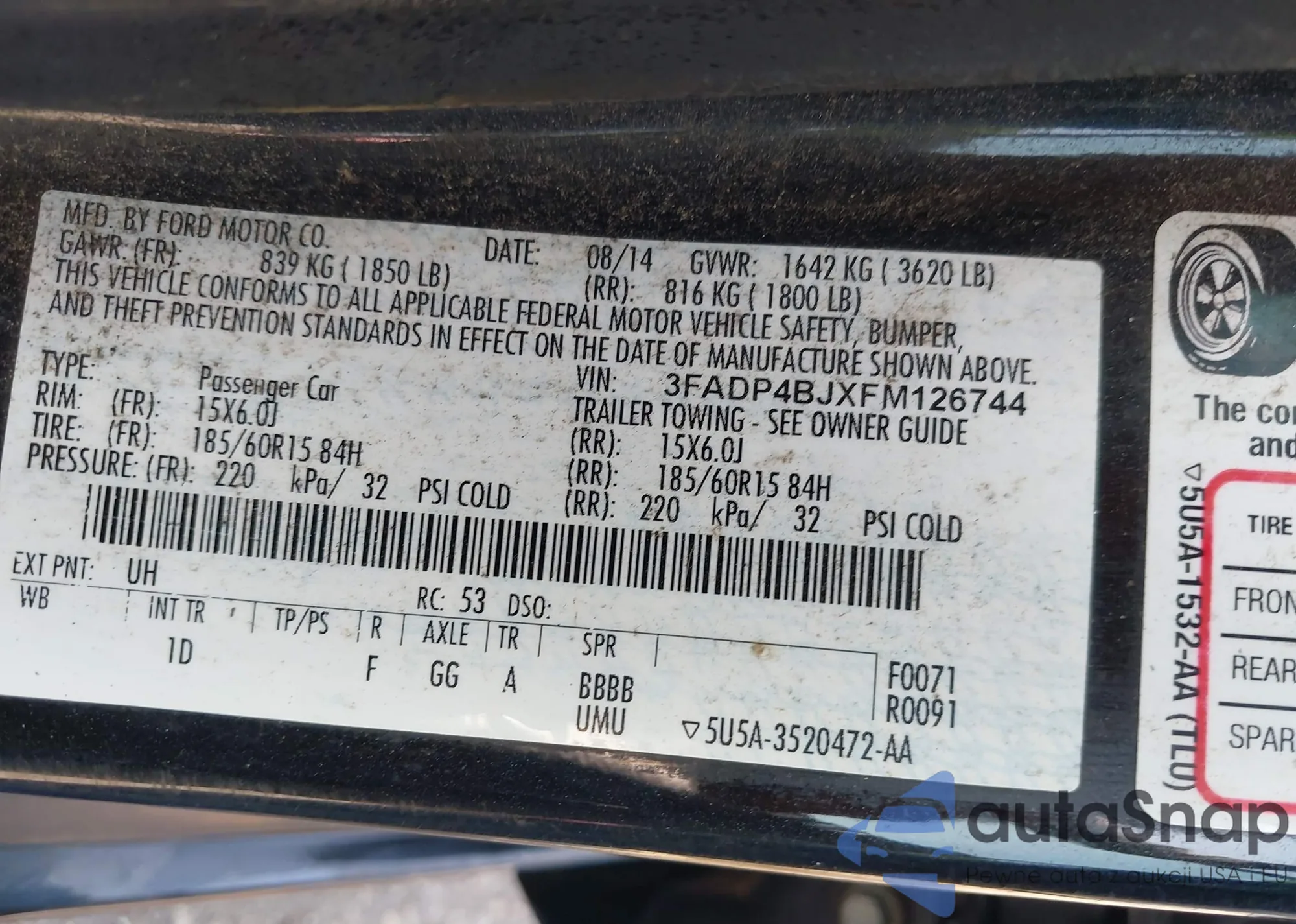 VIN: 3FADP4BJXFM126744