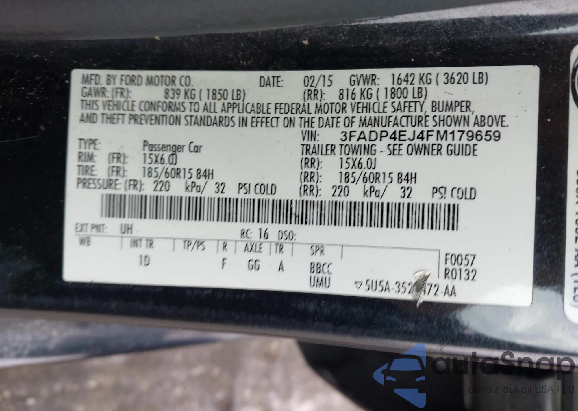 Автомобиль Ford Fiesta 2015 (VIN 3FADP4EJ4FM179659) ранее не участвовал в торгах. Документы чистые, пробег соответствует или ниже среднего по рынку. Продаётся страховой компанией — рекомендуем покупку. Доставка в порт займет около 6–8 недель.