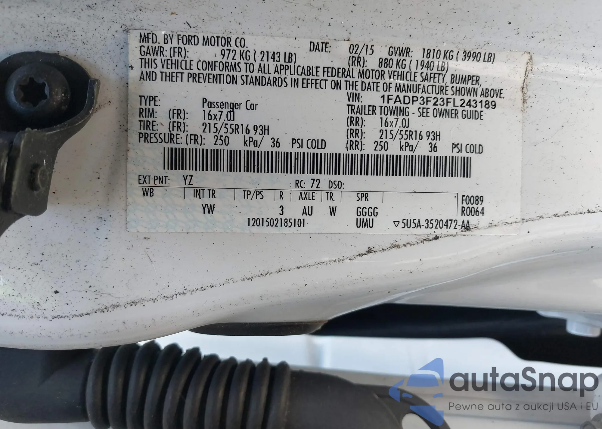 VIN: 1FADP3F23FL243189