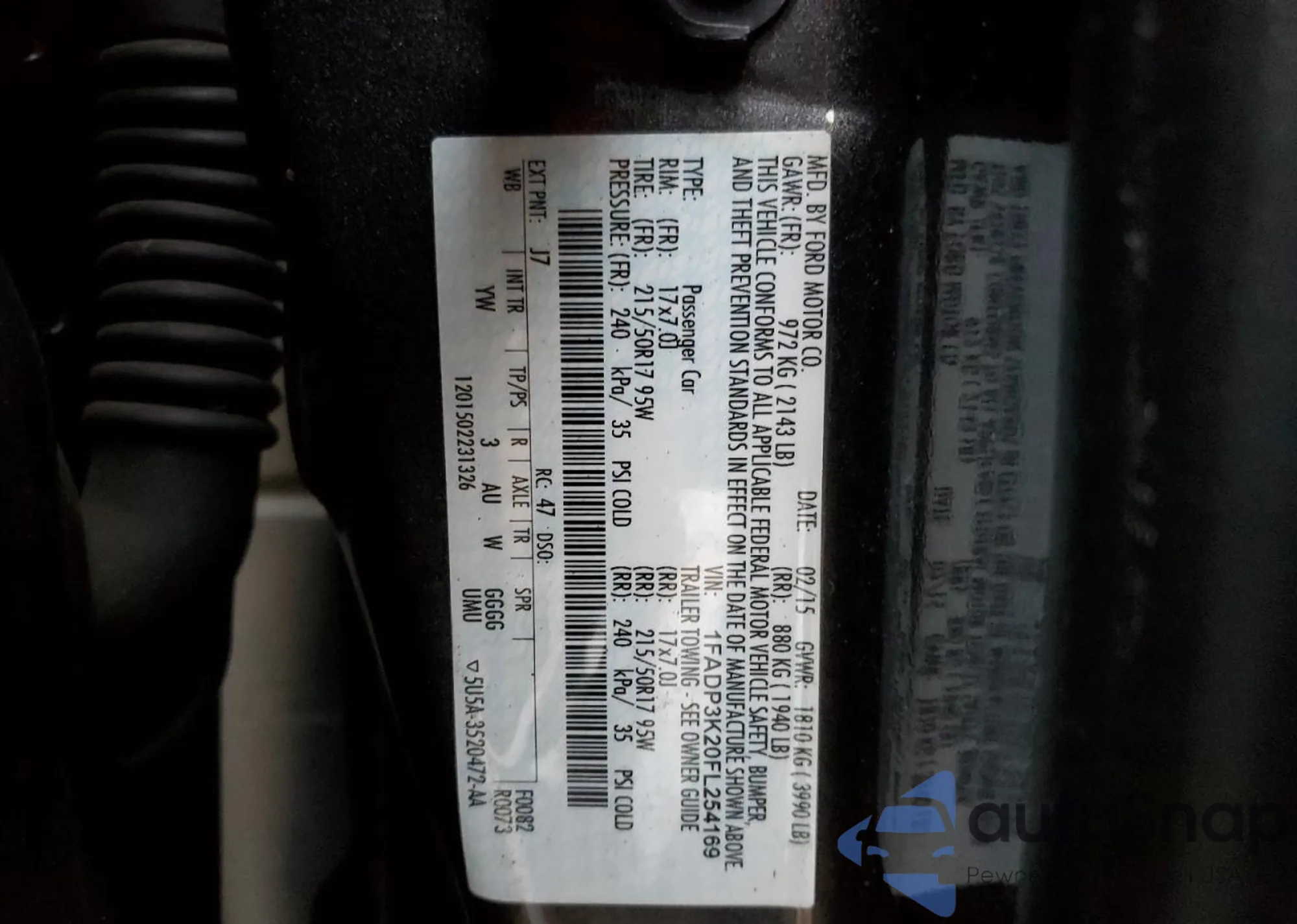 VIN: 1FADP3K20FL254169