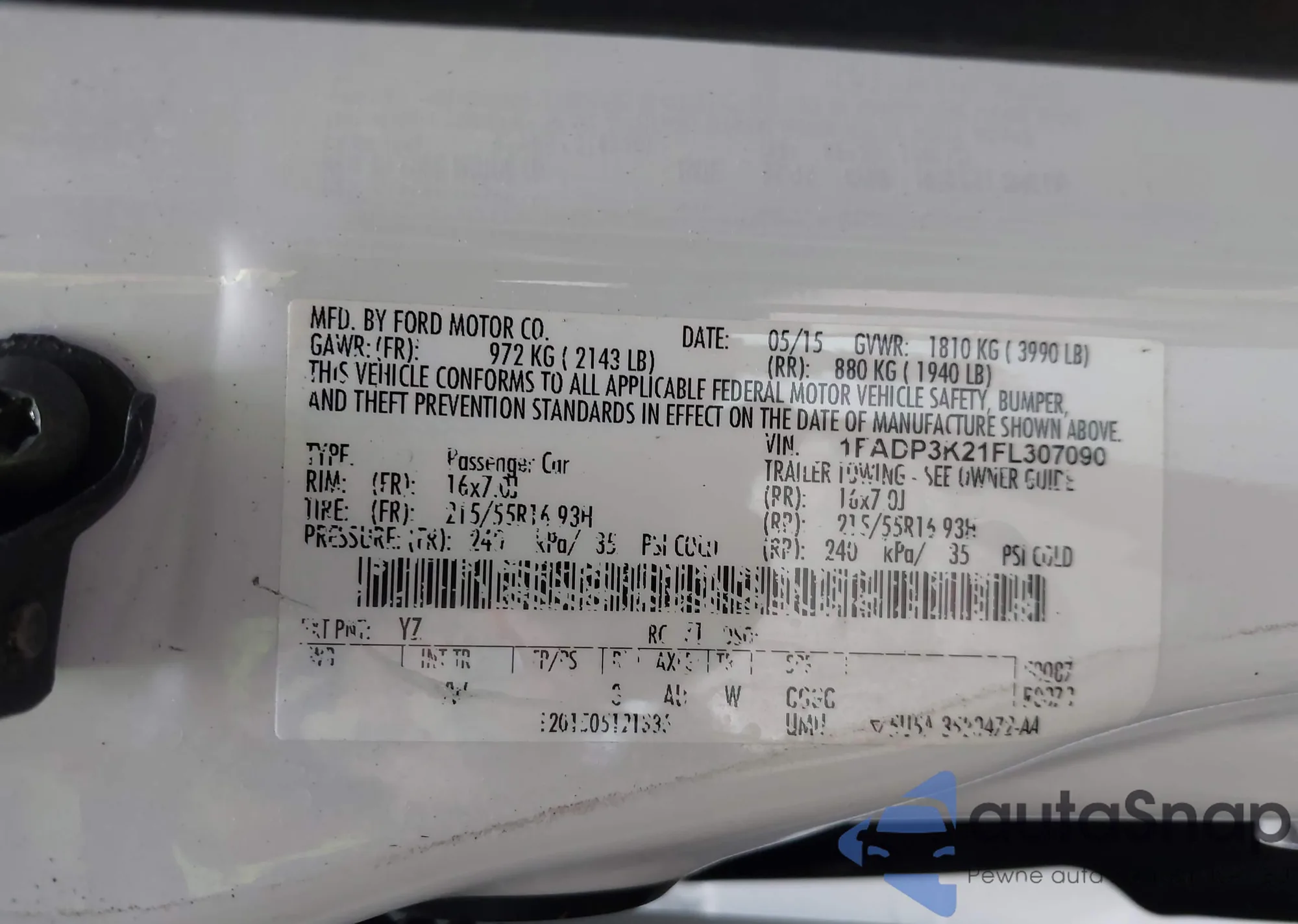 VIN: 1FADP3K21FL307090