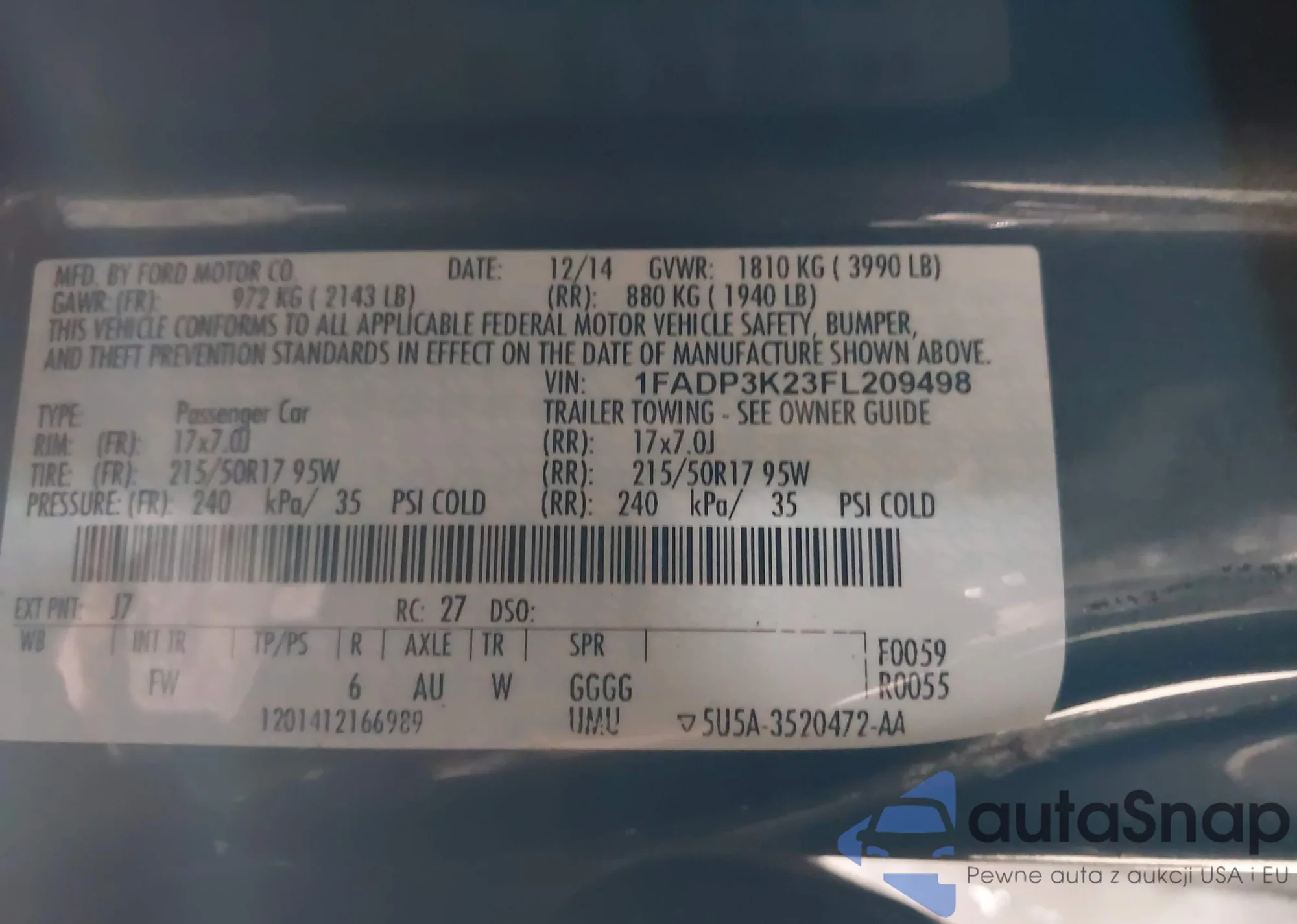 VIN: 1FADP3K23FL209498