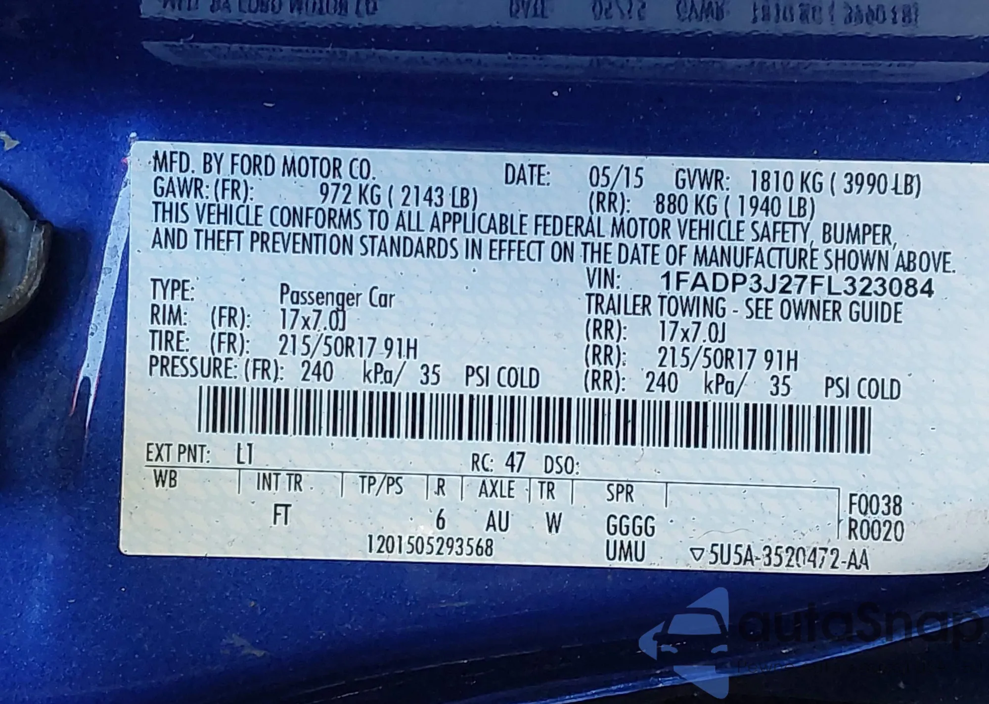 Автомобиль Ford Focus 2015 (VIN 1FADP3J27FL323084) ранее не участвовал в торгах. Документы чистые, пробег соответствует или ниже среднего по рынку. Продаётся страховой компанией — рекомендуем покупку. Доставка в порт займет около 6–8 недель.