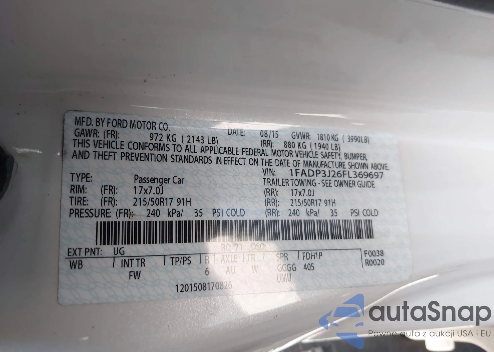 VIN: 1FADP3J26FL369697