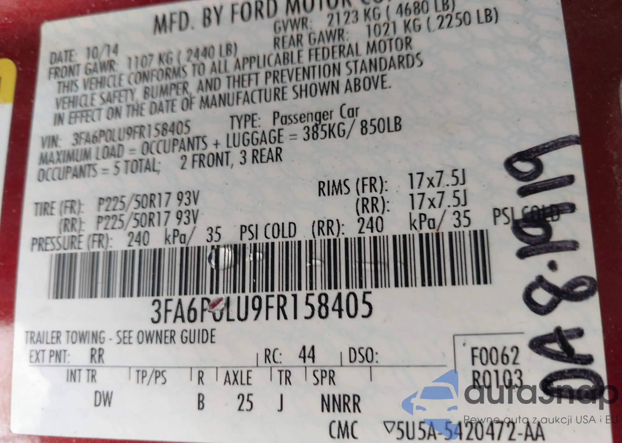 VIN: 3FA6P0LU9FR158405