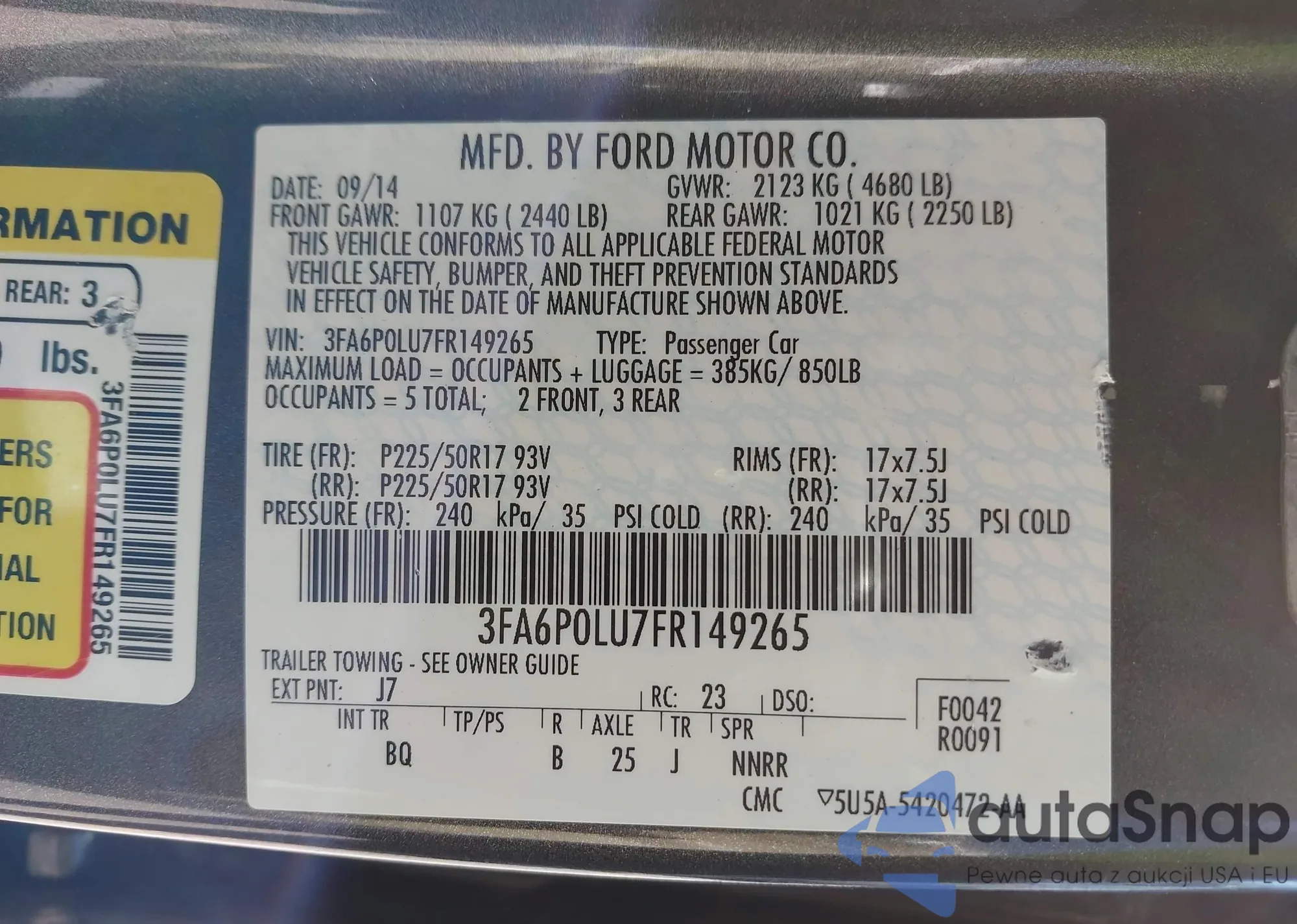 VIN: 3FA6P0LU7FR149265