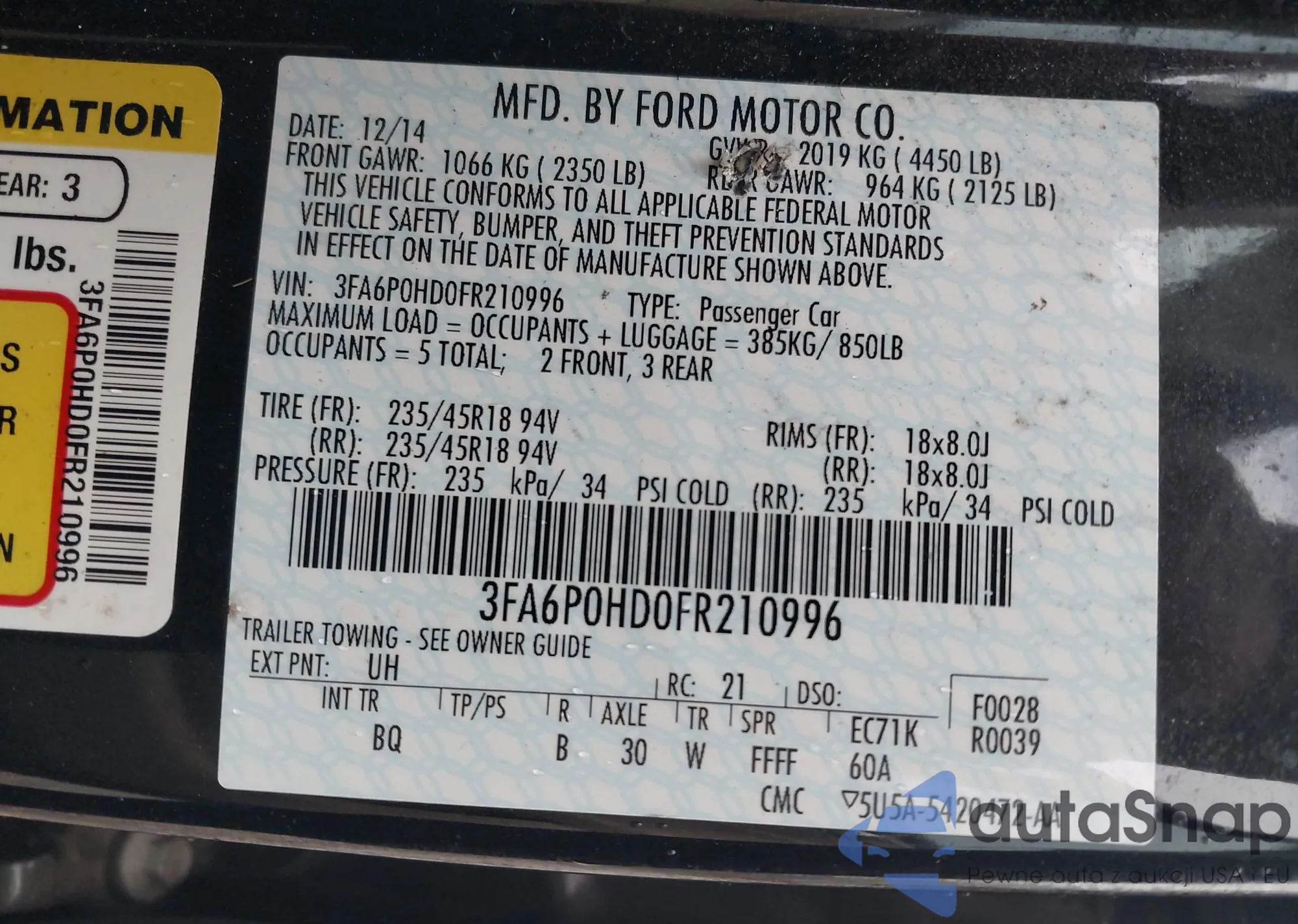 VIN: 3FA6P0HD0FR210996