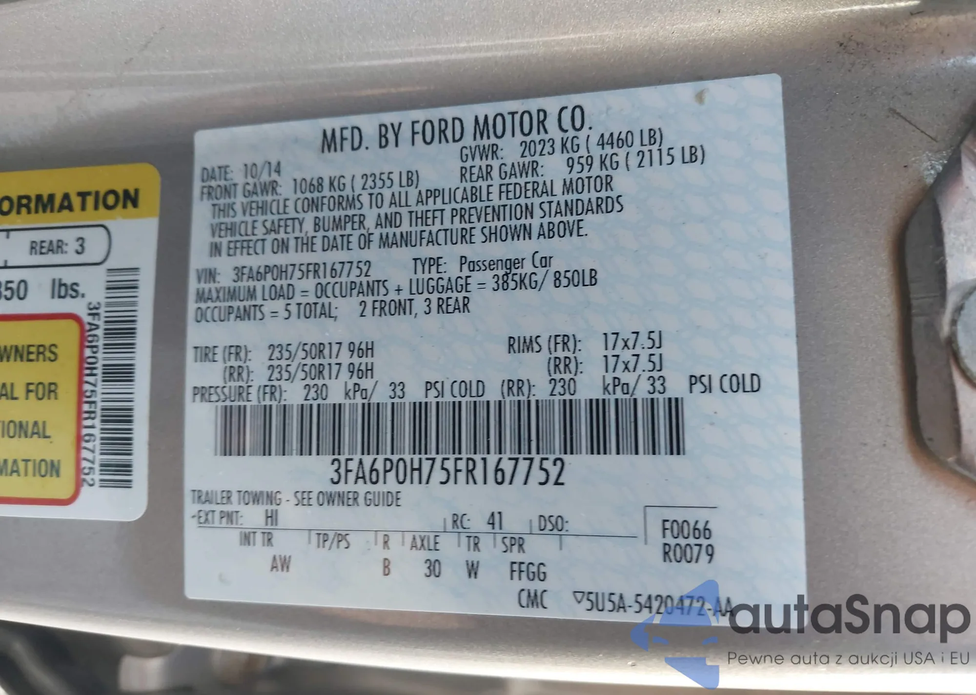 Автомобиль Ford Fusion 2015 (VIN 3FA6P0H75FR167752) ранее не участвовал в торгах. Документы чистые, пробег соответствует или ниже среднего по рынку. Продаётся страховой компанией — рекомендуем покупку. Доставка в порт займет около 6–8 недель.