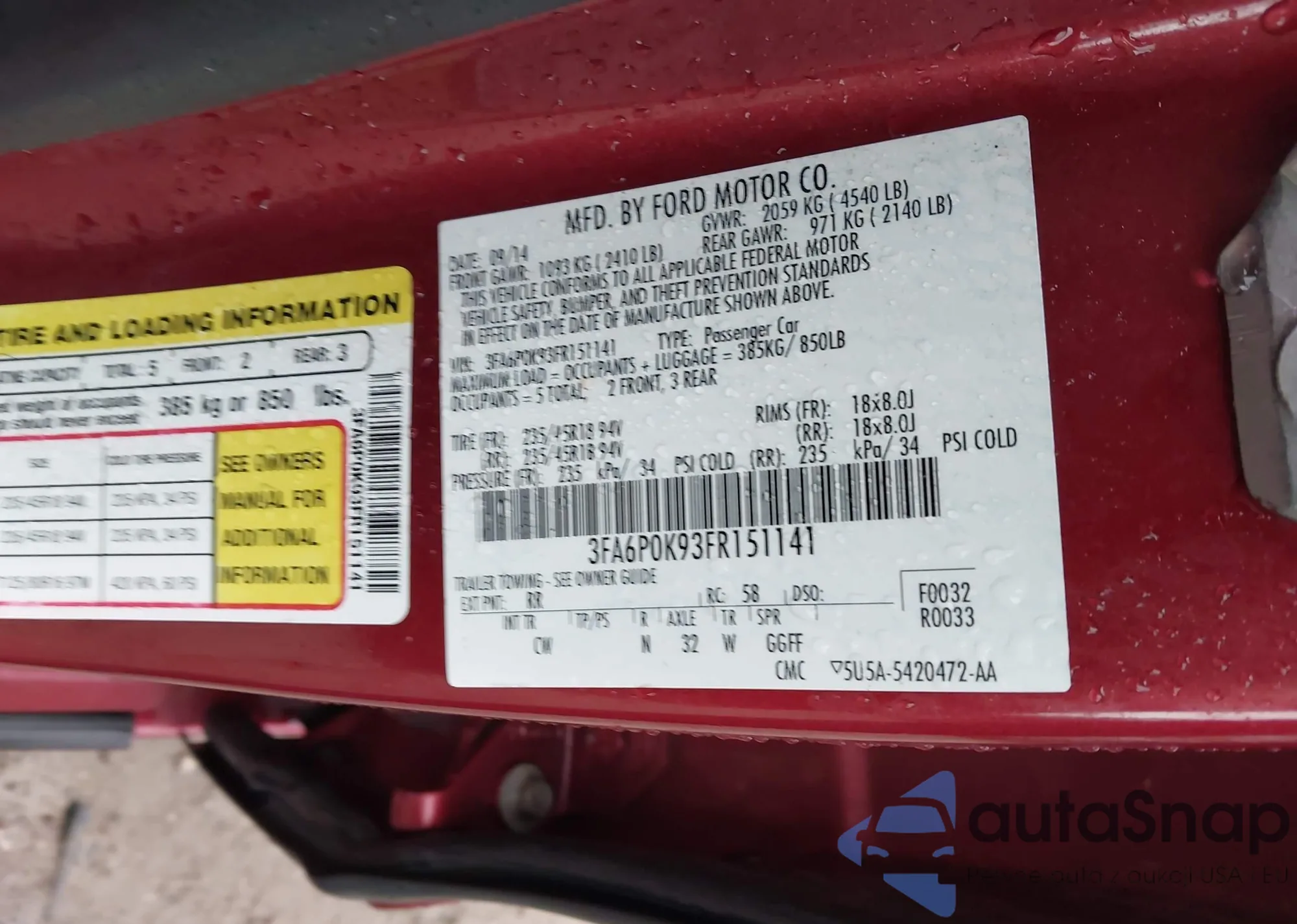 VIN: 3FA6P0K93FR151141