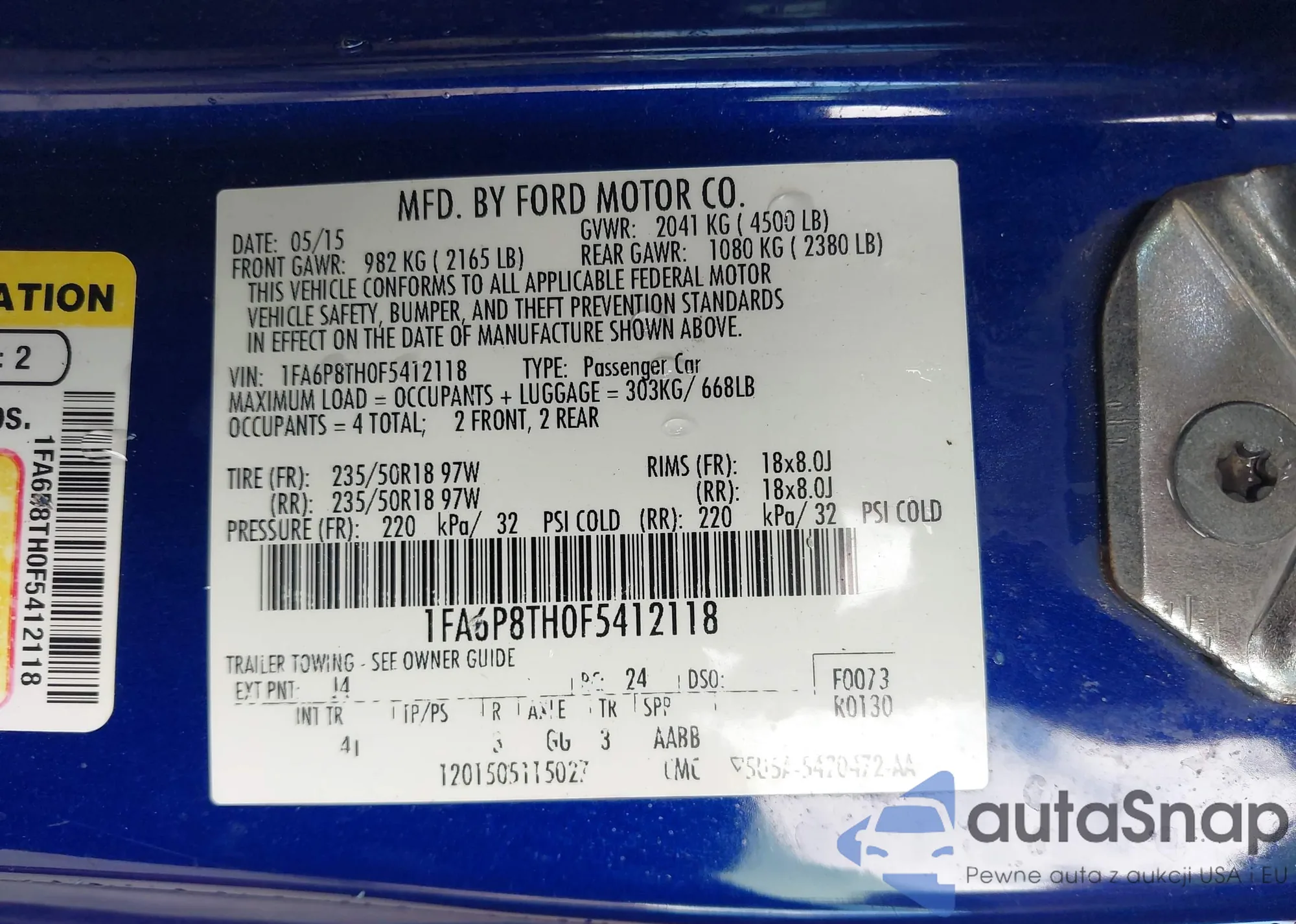VIN: 1FA6P8TH0F5412118