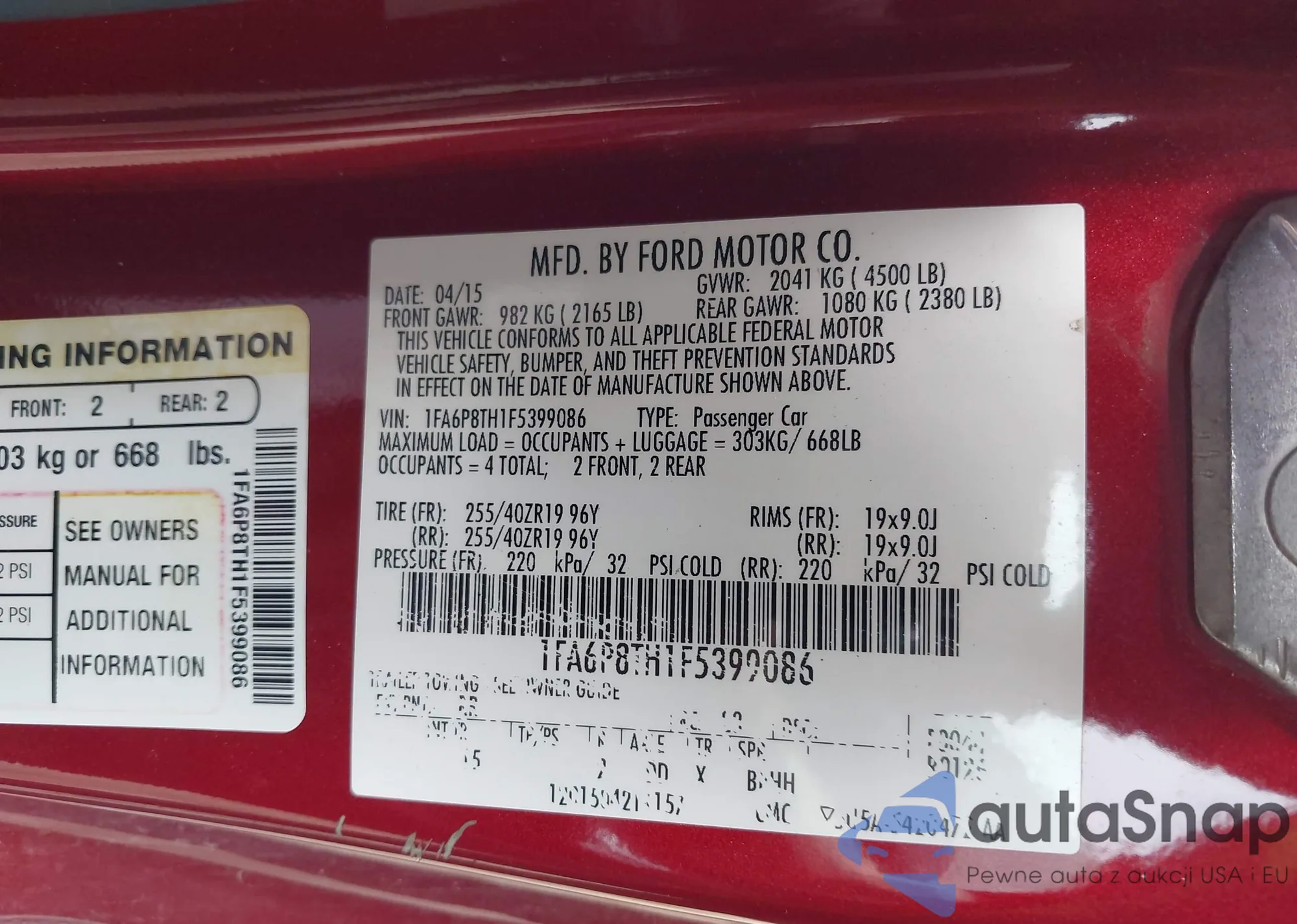 VIN: 1FA6P8TH1F5399086