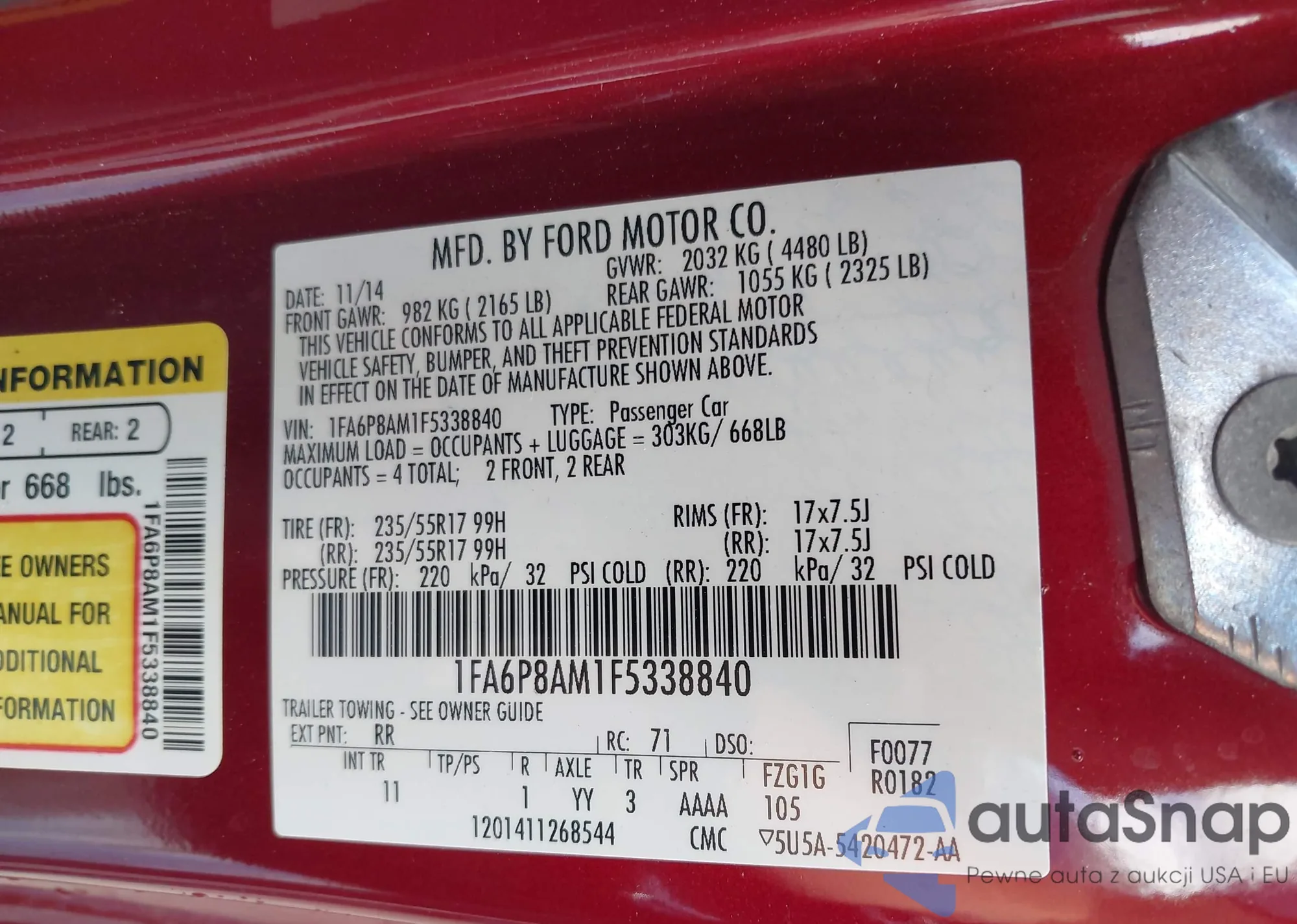VIN: 1FA6P8AM1F5338840