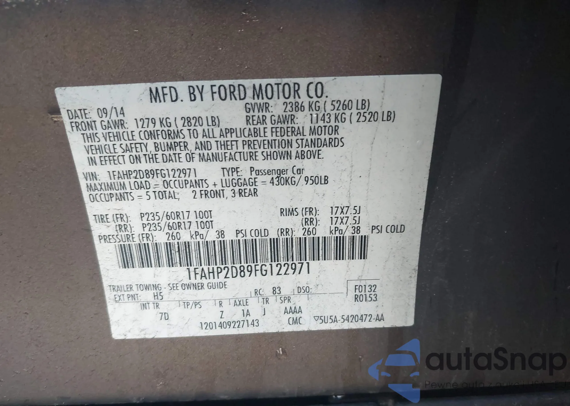 VIN: 1FAHP2D89FG122971