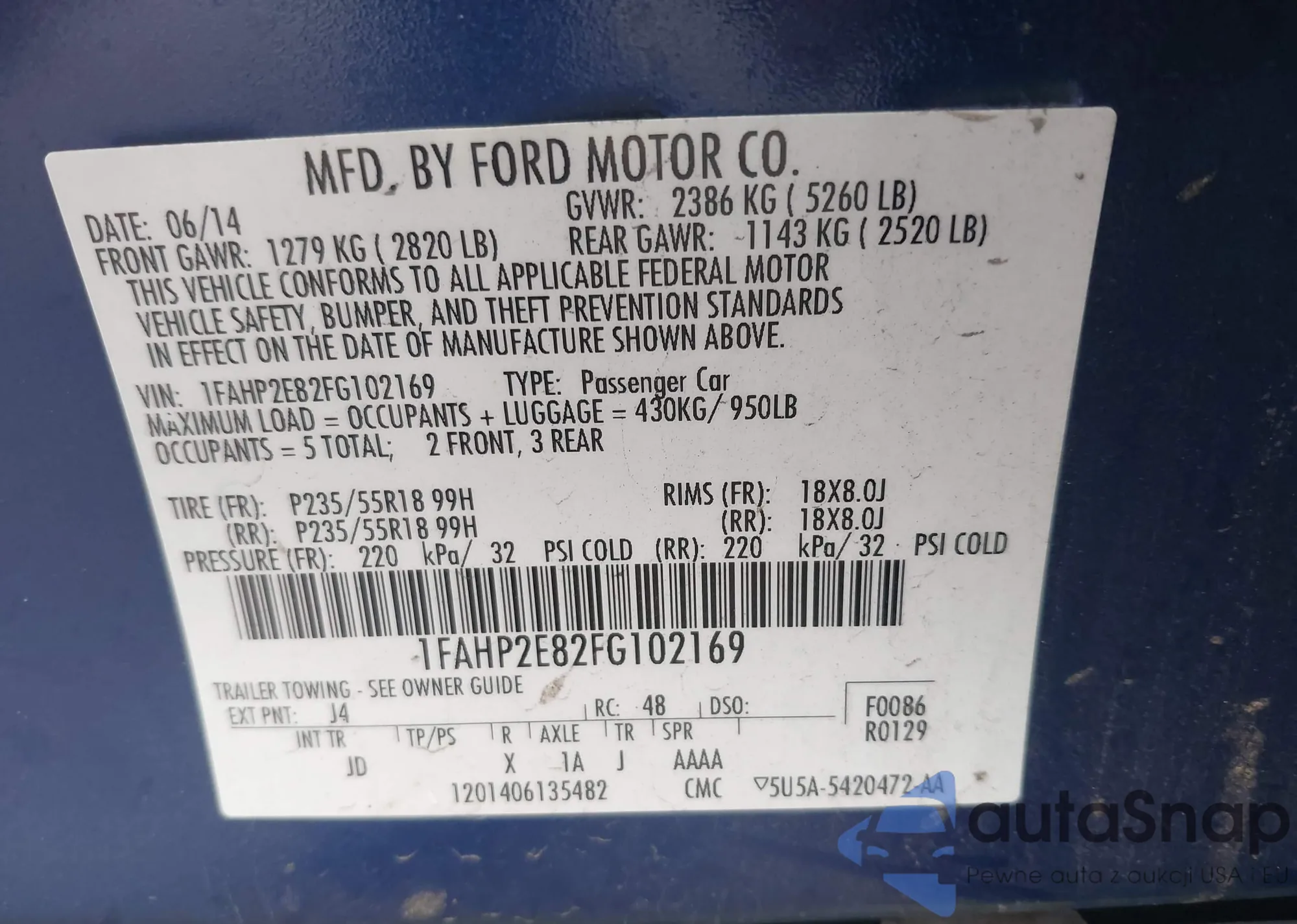 Автомобиль Ford Taurus 2015 (VIN 1FAHP2E82FG102169) ранее не участвовал в торгах. Документы чистые, пробег соответствует или ниже среднего по рынку. Продаётся страховой компанией — рекомендуем покупку. Доставка в порт займет около 6–8 недель.