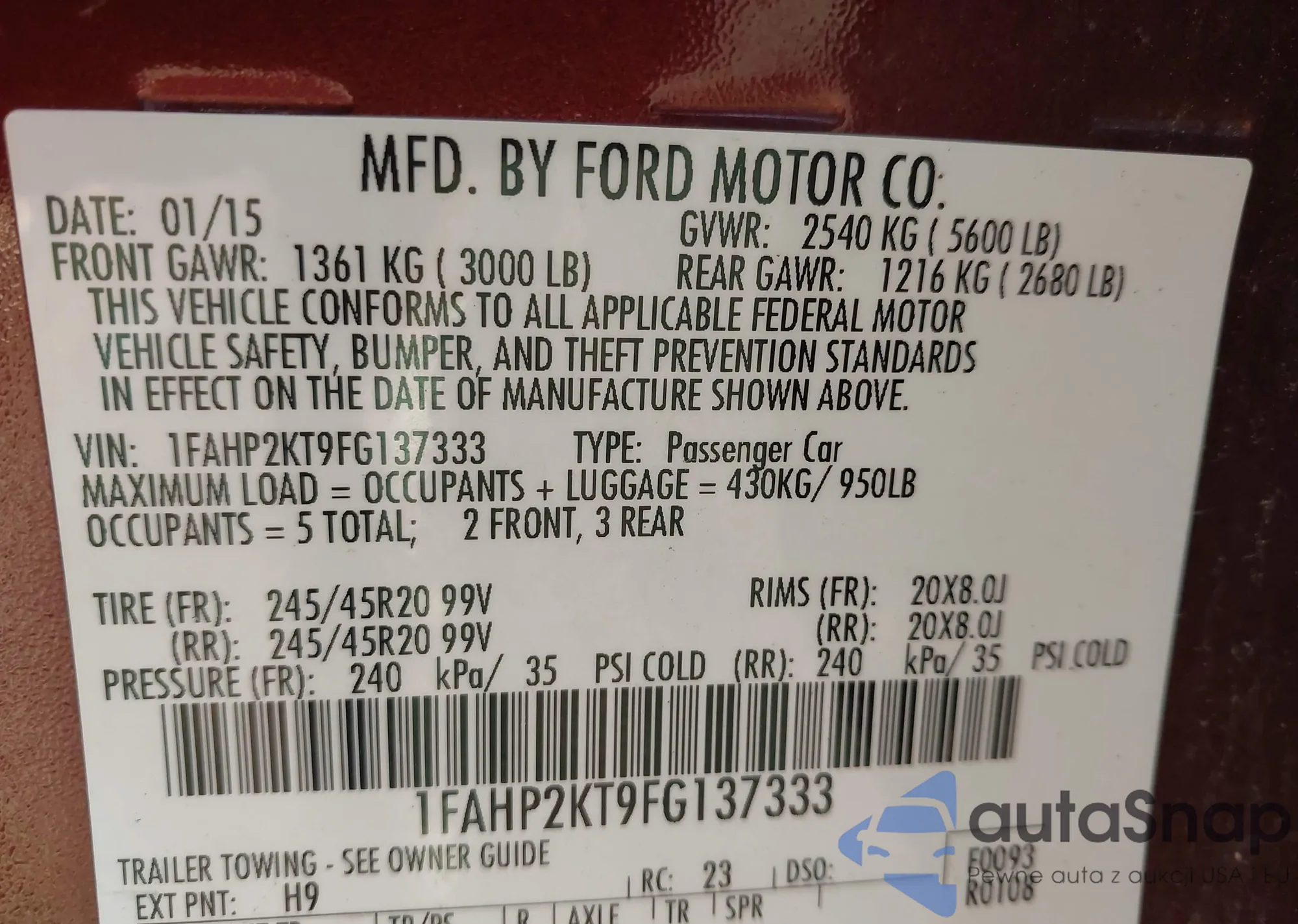 VIN: 1FAHP2KT9FG137333