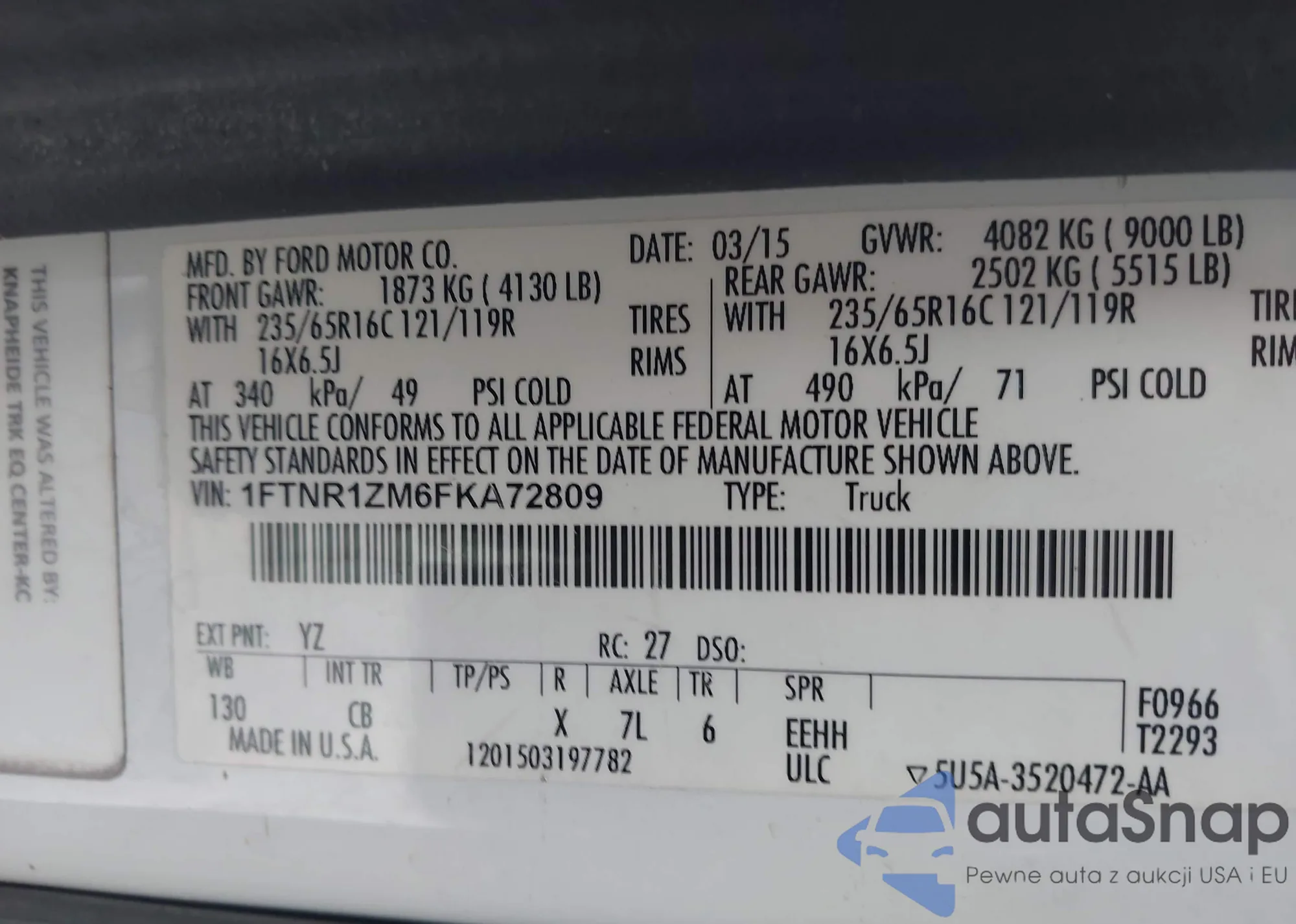 VIN: 1FTNR1ZM6FKA72809