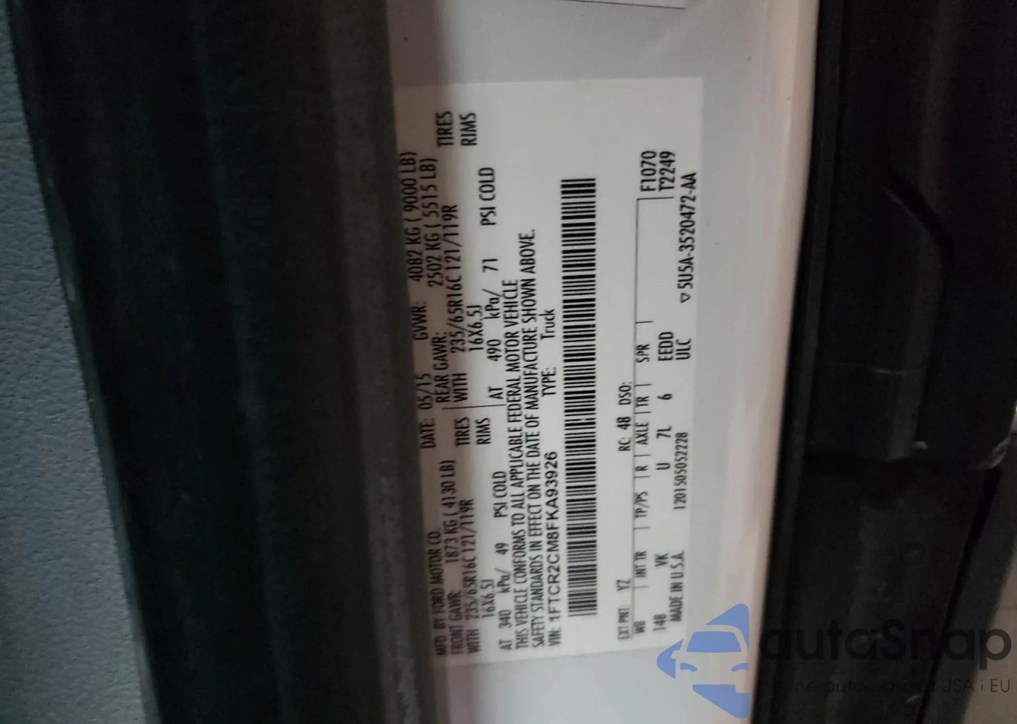 VIN: 1FTCR2CM8FKA93926