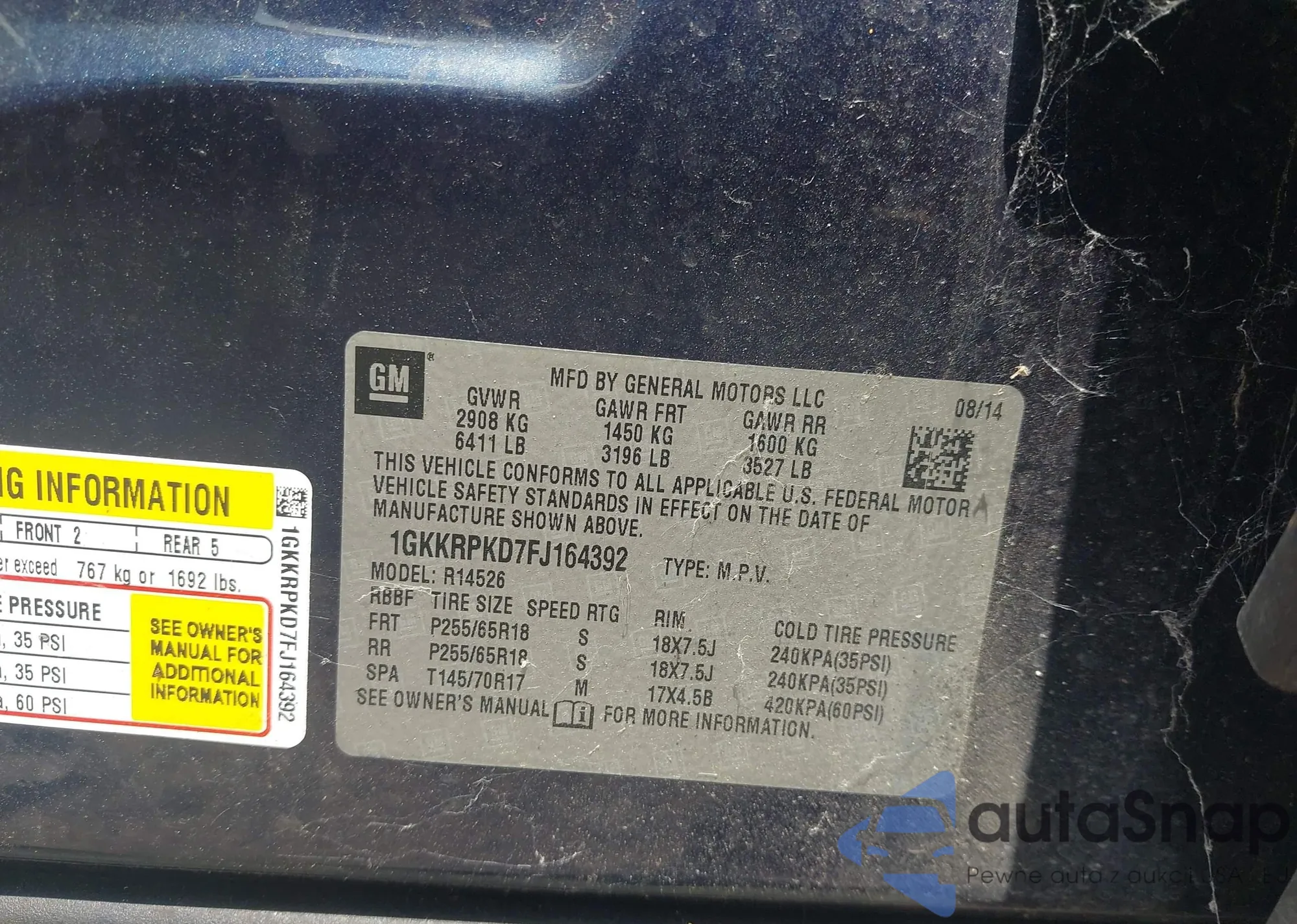 VIN: 1GKKRPKD7FJ164392