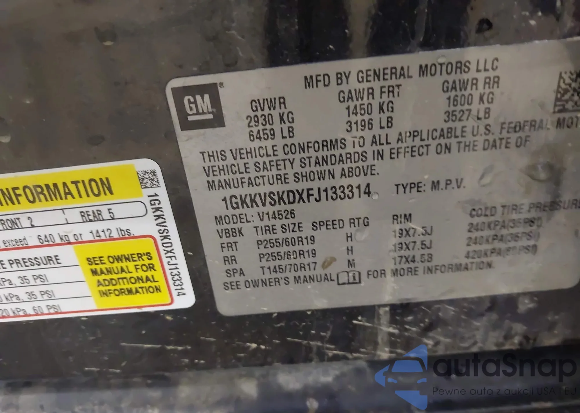 VIN: 1GKKVSKDXFJ133314