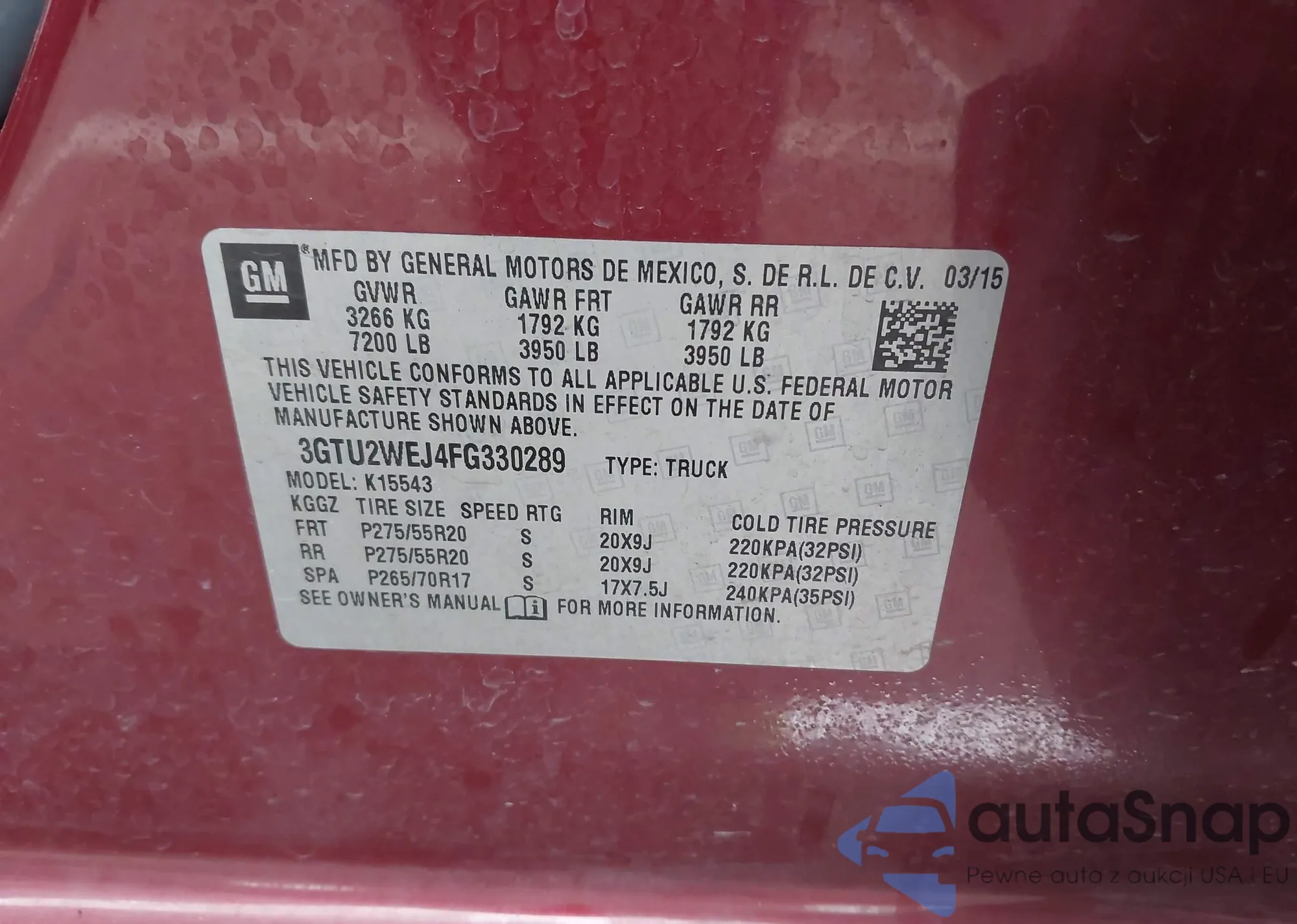 VIN: 3GTU2WEJ4FG330289