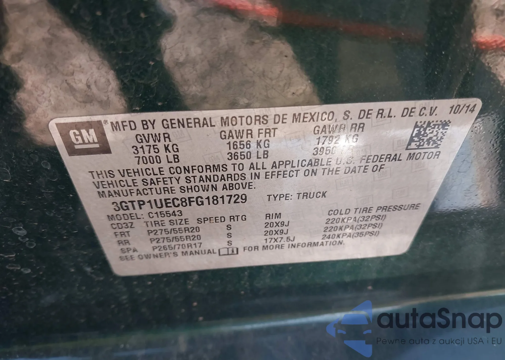• VIN: 3GTP1UEC8FG181729