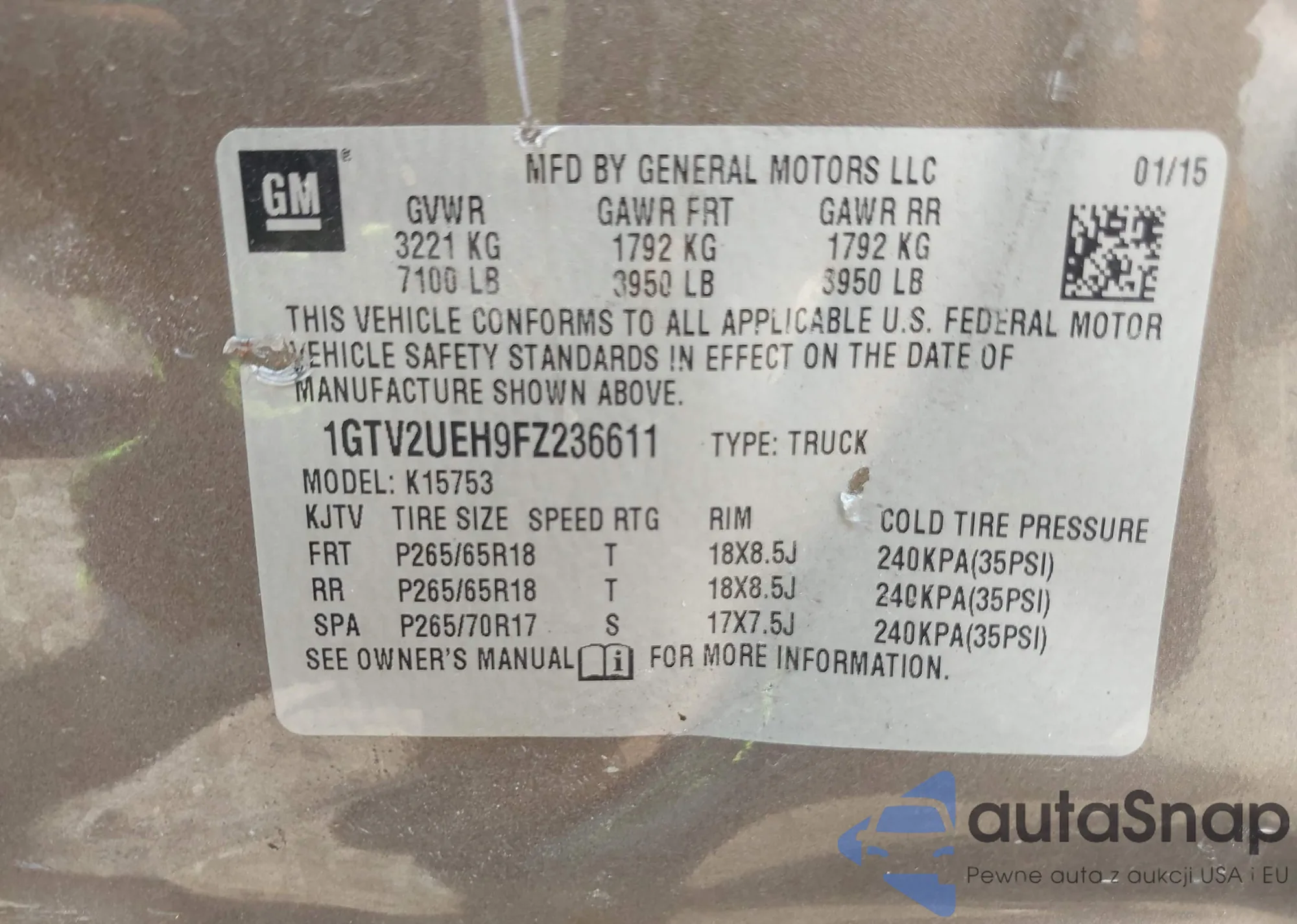 VIN: 1GTV2UEH9FZ236611