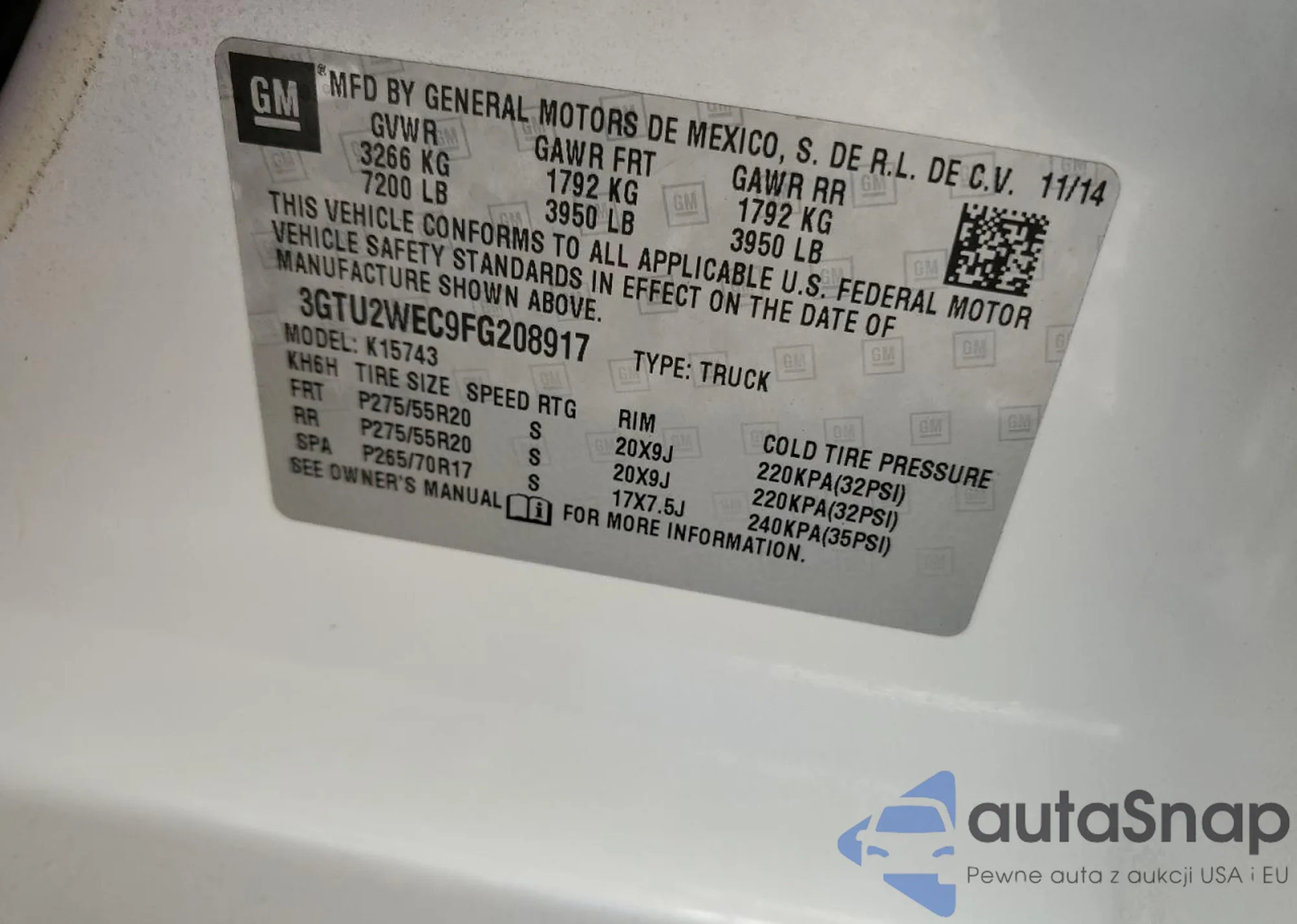 VIN: 3GTU2WEC9FG208917