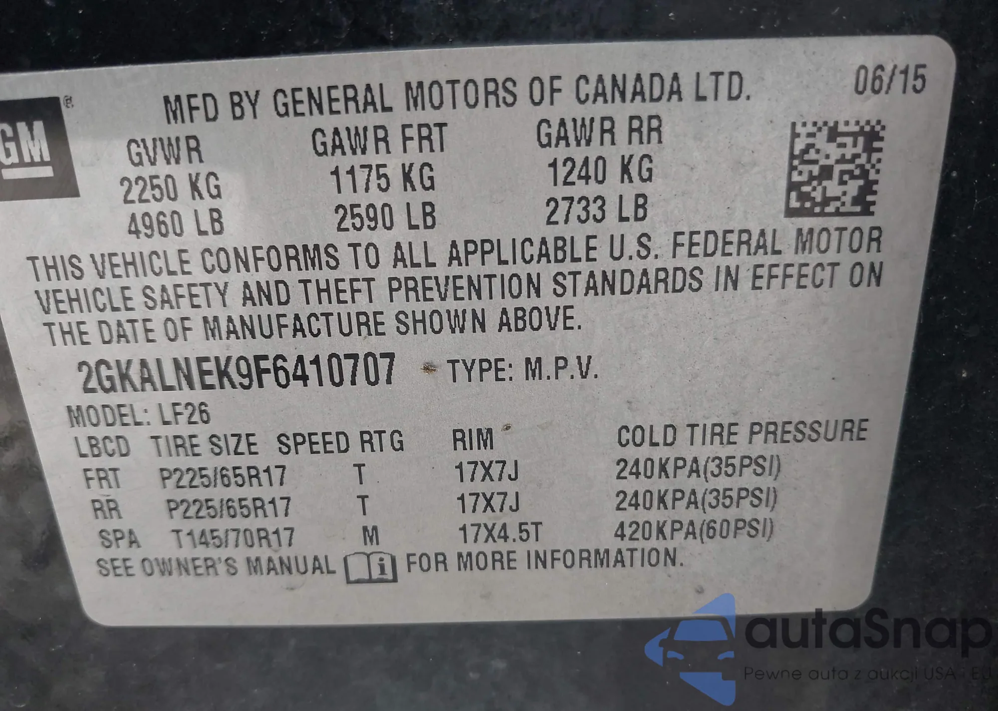 VIN: 2GKALNEK9F6410707