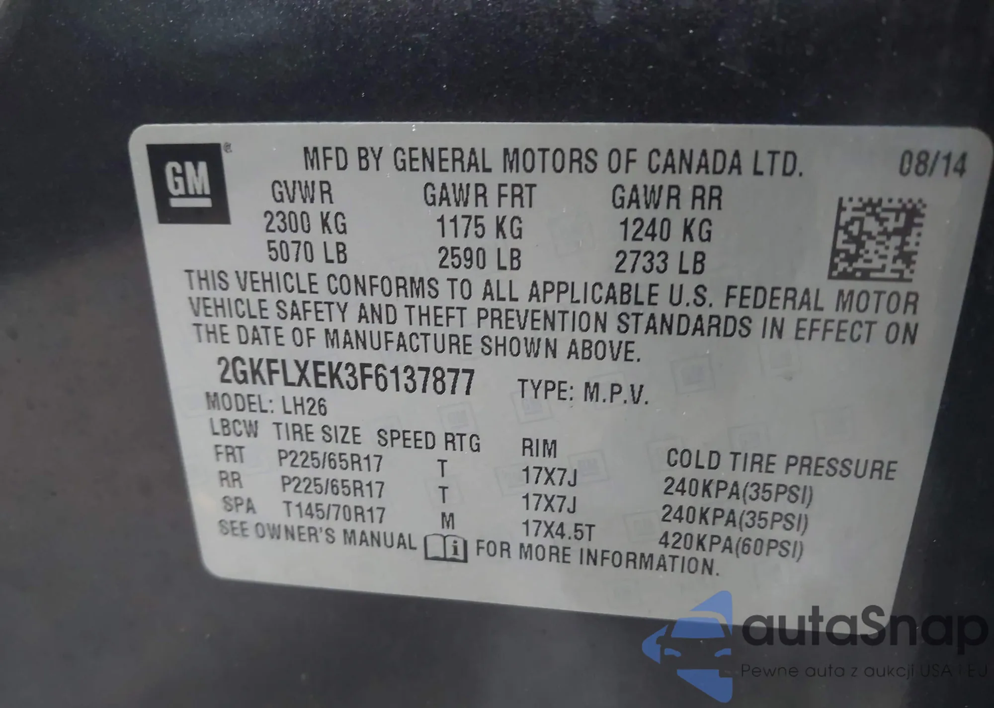 VIN: 2GKFLXEK3F6137877
