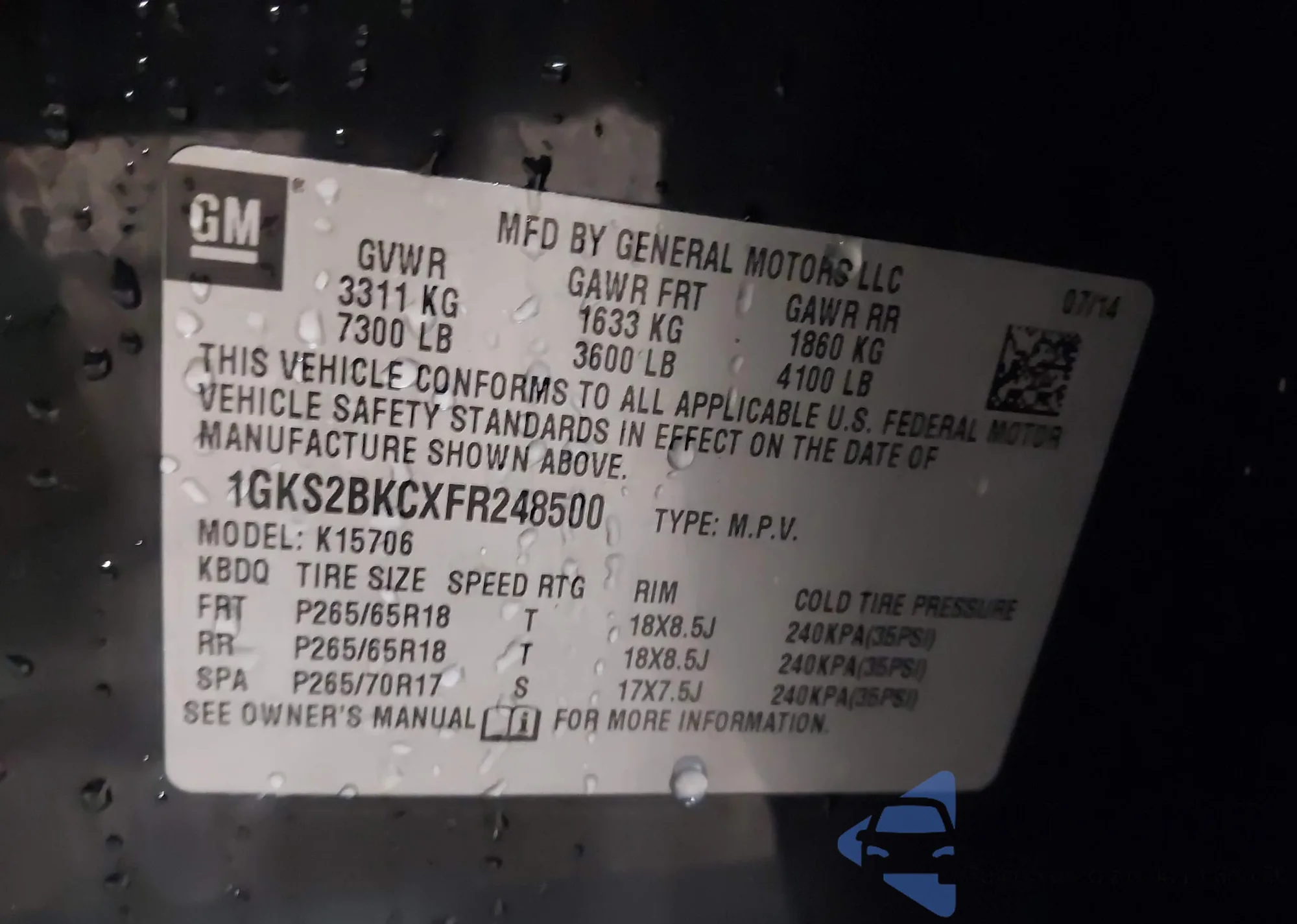 VIN: 1GKS2BKCXFR248500