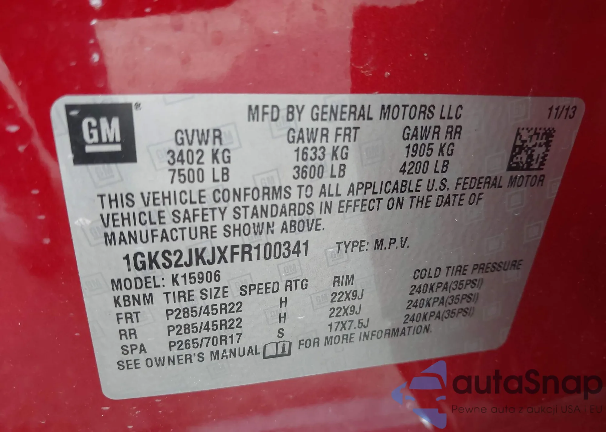 VIN: 1GKS2JKJXFR100341