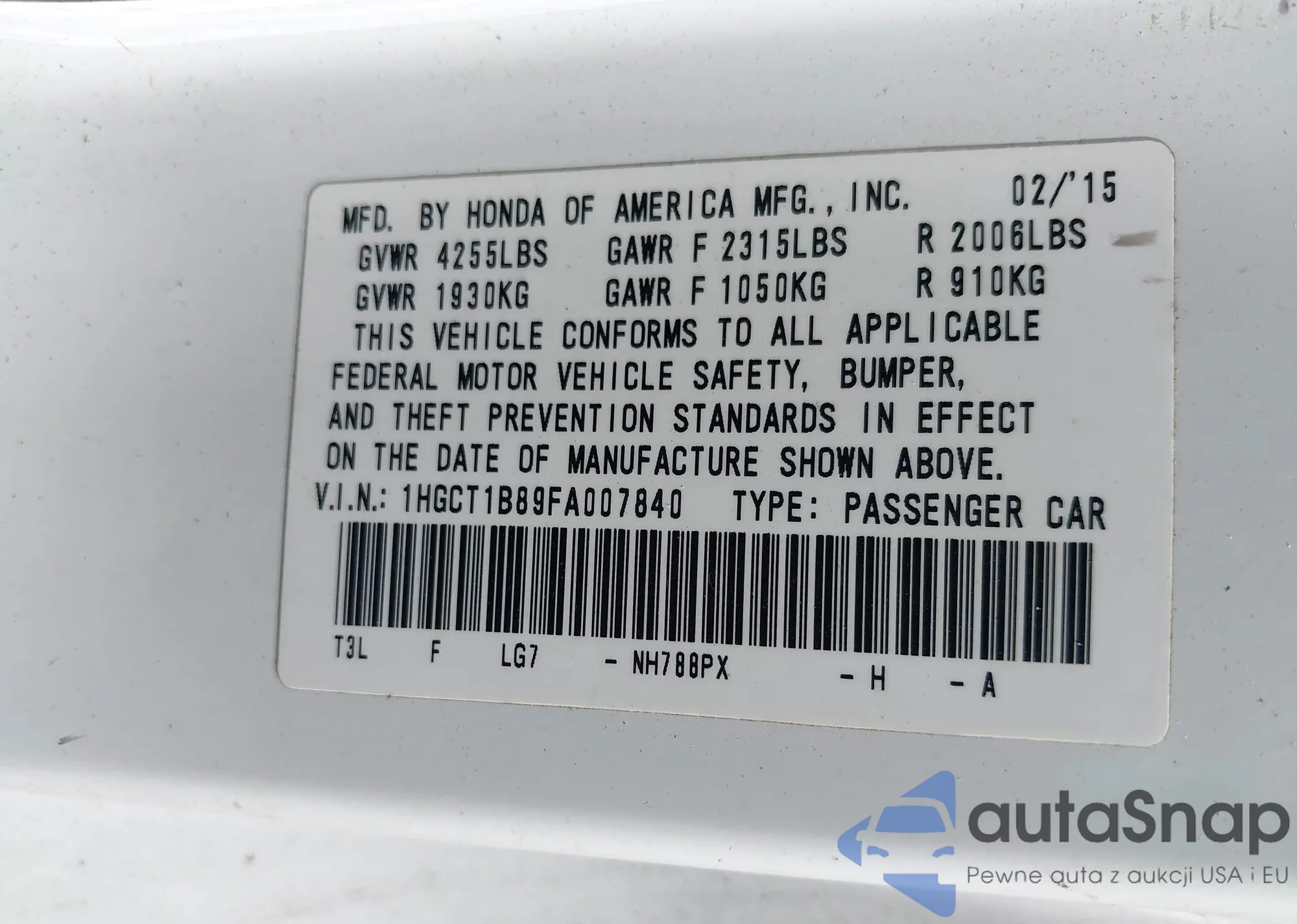 VIN: 1HGCT1B89FA007840