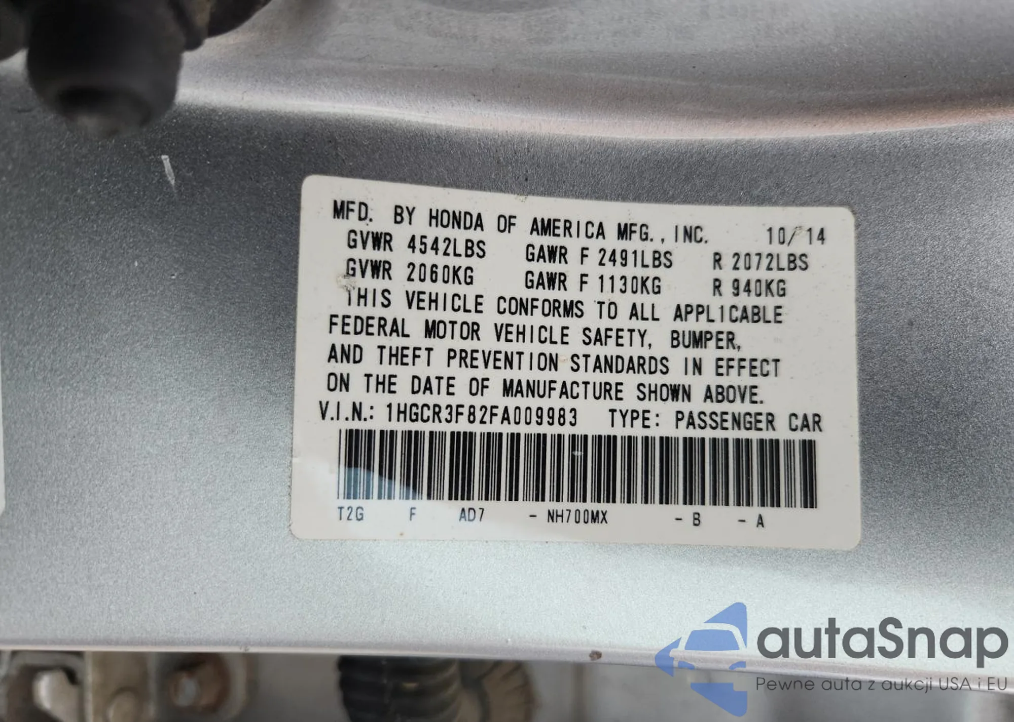 VIN: 1HGCR3F82FA009983